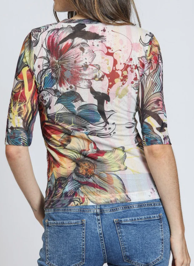 Half Sleeve Printed Mesh Top