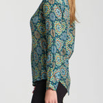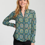 The Mandala Blouse is your new go-to for effortless style! With its eye-catching prints and relaxed fit, this button-up brings a splash of color to your wardrobe. Roll up the tab sleeves for a laid-back vibe, and enjoy a silhouette that flatters every time. Perfect for layering or wearing solo, this blouse is ready to brighten your look season after season. Easy, breezy, and irresistibly playful—snap it up and wear it on repeat!