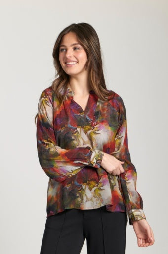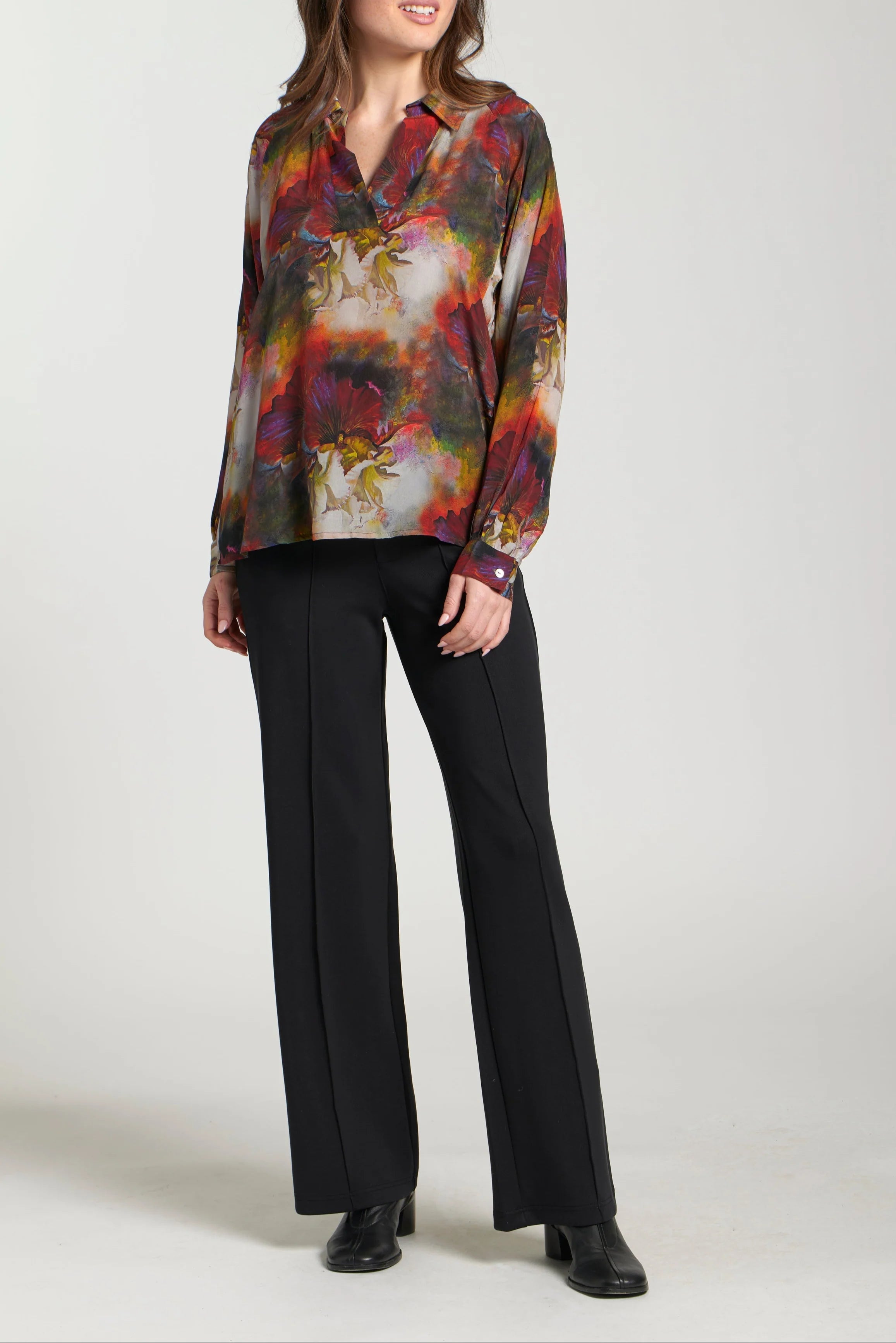 Add a splash of fun to your wardrobe with the Half-Placket Pullover Blouse. Crafted from a soft blend of 64% cupro and 36% viscose, it features a playful V-neck half placket and flounce sleeves that bring movement and charm. Its comfortable fit makes it perfect for all-day wear while turning heads with every step. Embrace bold style and let this blouse be your go-to for a lively, confident look.