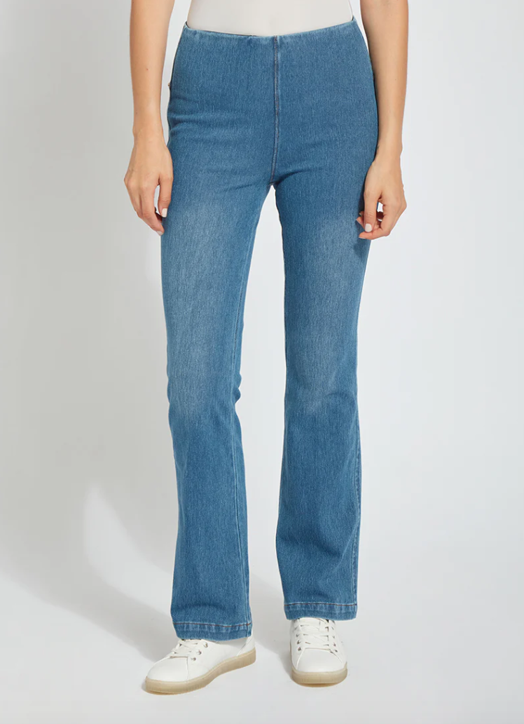 Look and feel amazingly comfy in this stylish bootcut jean that skims the hips and thighs providing superior comfort and contour. The patented waistband construction and deep side pockets make these jeans ideal for both work and leisure. Eye-catching details, including contrast-color top stitching and studded back pockets, complete this timeless look.