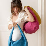 The Bianca Soft Crescent Shoulder Bag brings a fun, fresh twist to your everyday style with its luscious vegan suede in vibrant colors. Its slouchy moon shape and minimal hardware keep things effortlessly cool, while the top zip closure and spacious back zip pocket—both featuring our signature Joy Susan logo pulls—offer easy access and secure storage. With comfy shoulder strap length, interior pockets, and floral lining, it’s the perfect playful companion for day-to-night adventures.
