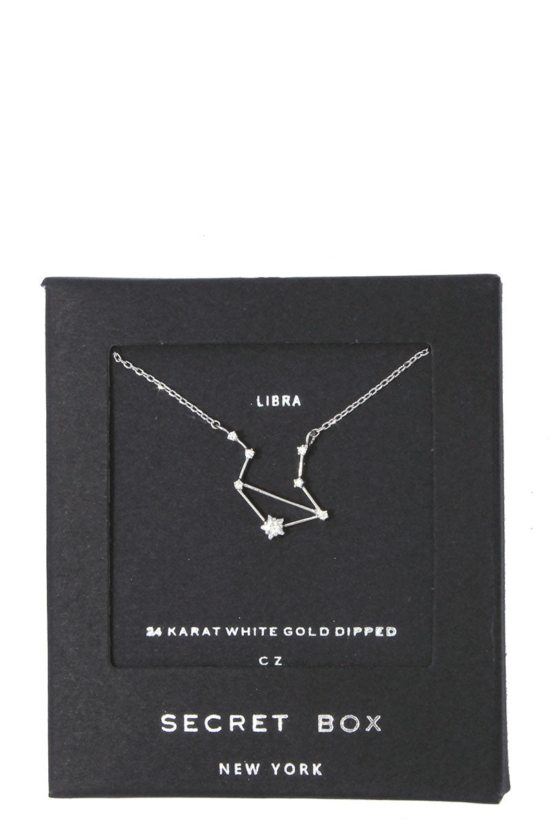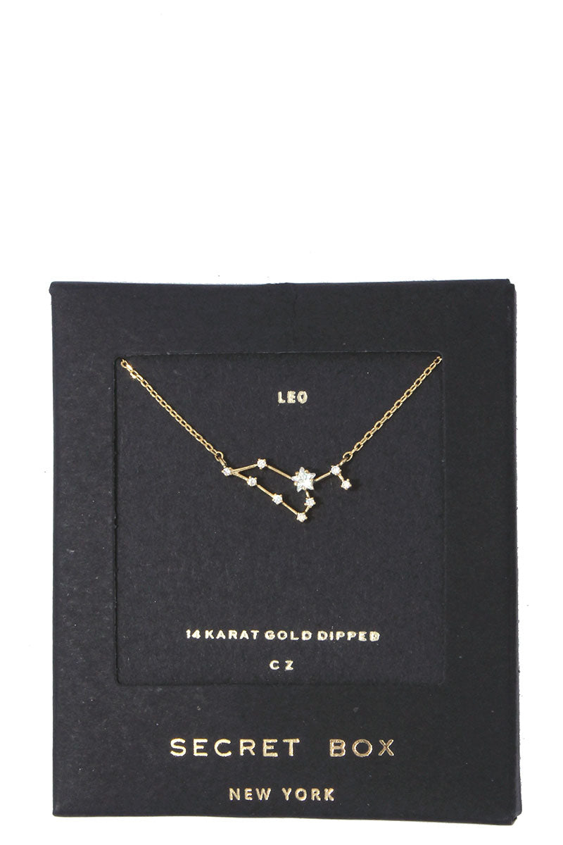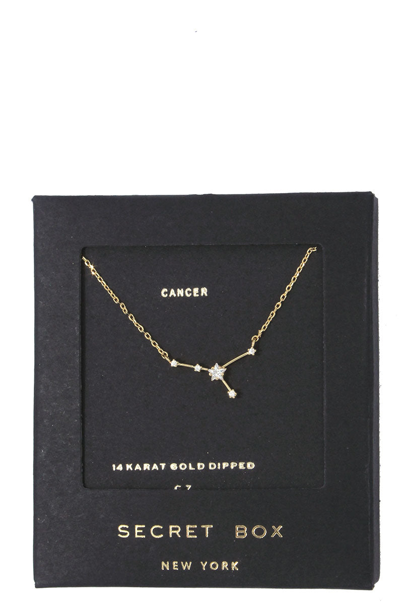 Channel your inner star power with our dainty Constellation Astrology Necklace. Made with brass and dipped in 14k Gold or Sterling Silver, this elegant necklace sparkles with Cubic Zirconia stars. Perfect for adding a touch of celestial charm to any outfit.