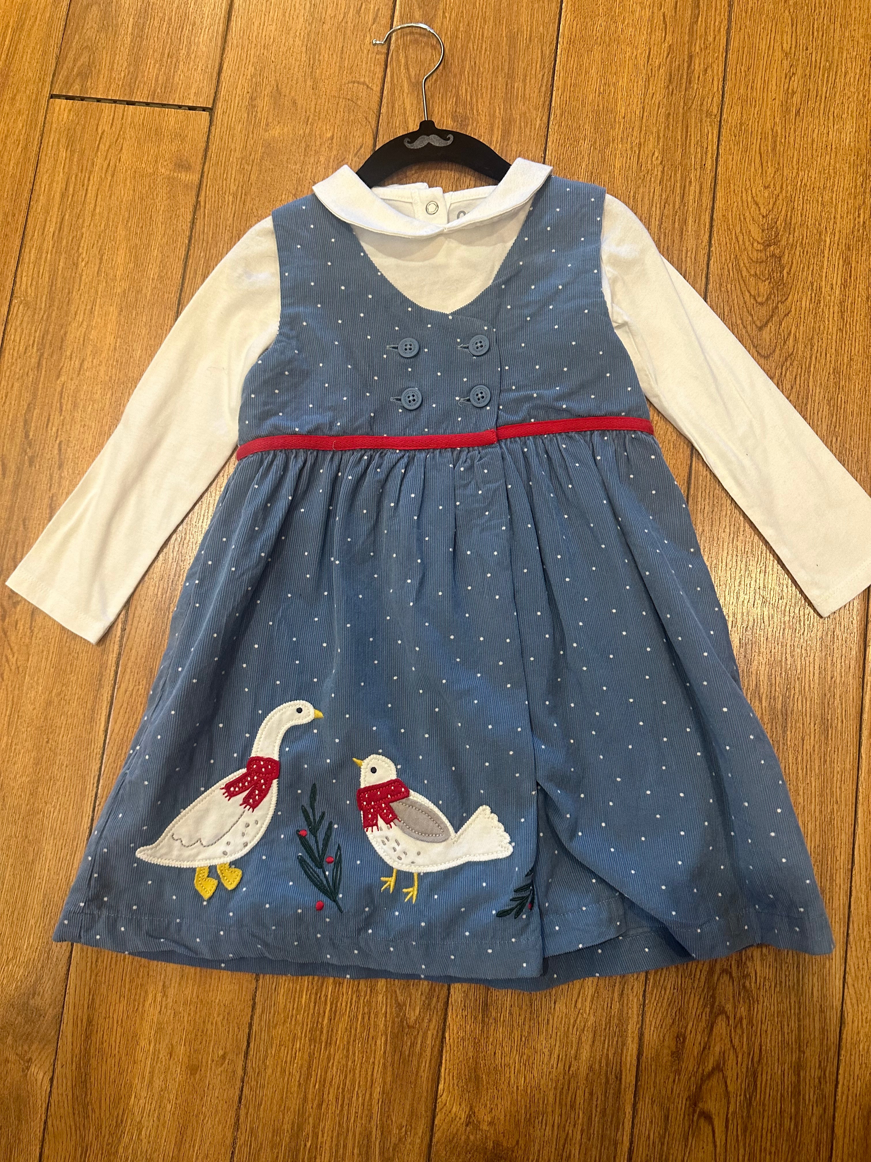 This 3-4t Corduroy Goose Dress is perfect for your little one. Made with a luxurious corduroy fabric, this dress features sweet goose appliqués plus an adorable layering shirt with a collard neckline. Your little one can stay comfortable and stylish all day long.