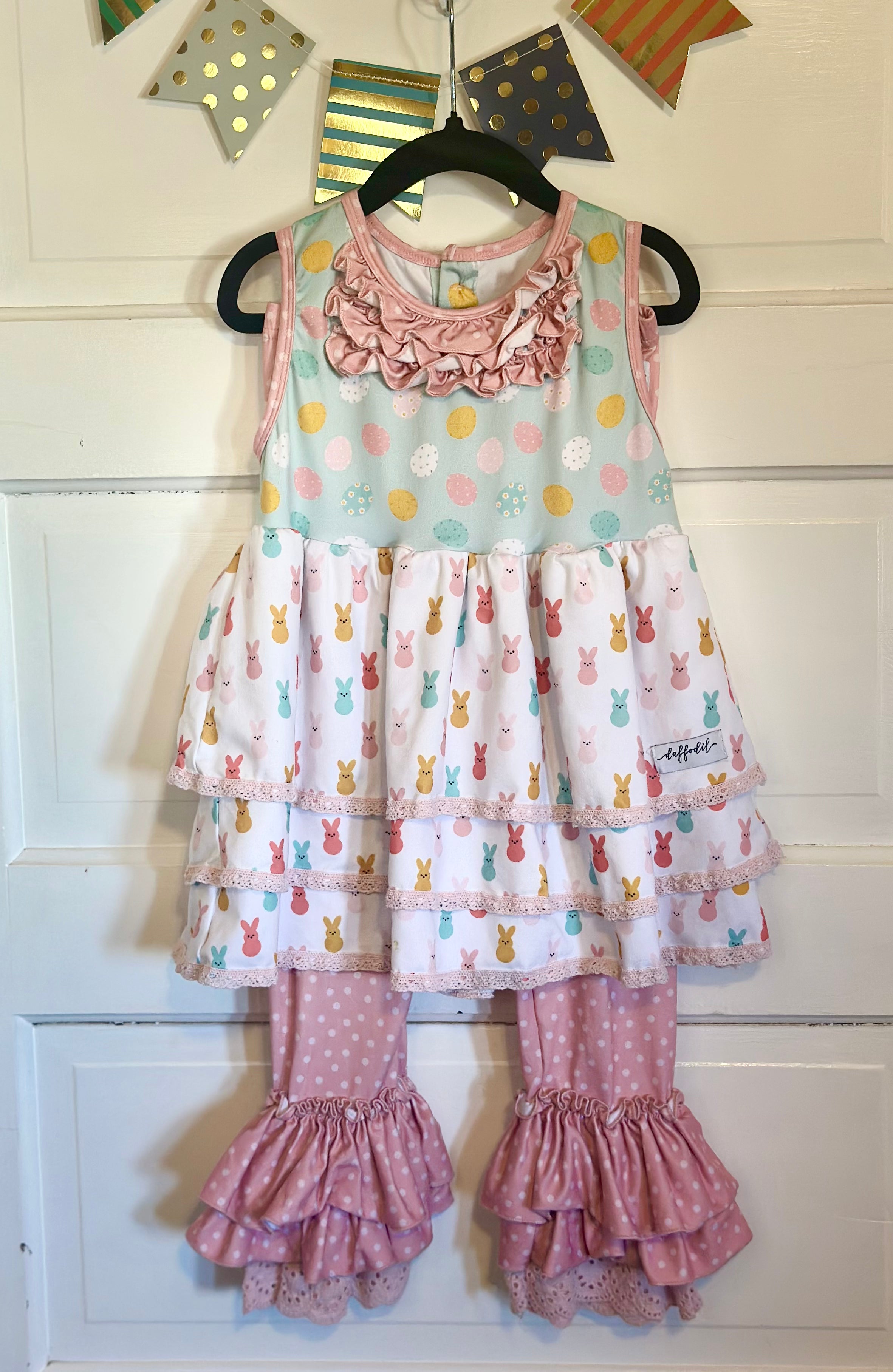 Get ready for Easter with our Daffodil Peep Dress! This playful dress comes with matching ruffle leggings in size 6t, making it an instant favorite for the holiday. With its fun and unique design, your little one will be the talk of the egg hunt!