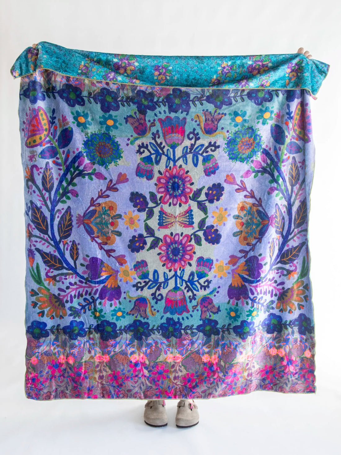 Double-Sided Cozy Throw Blanket - Border Folk Garden