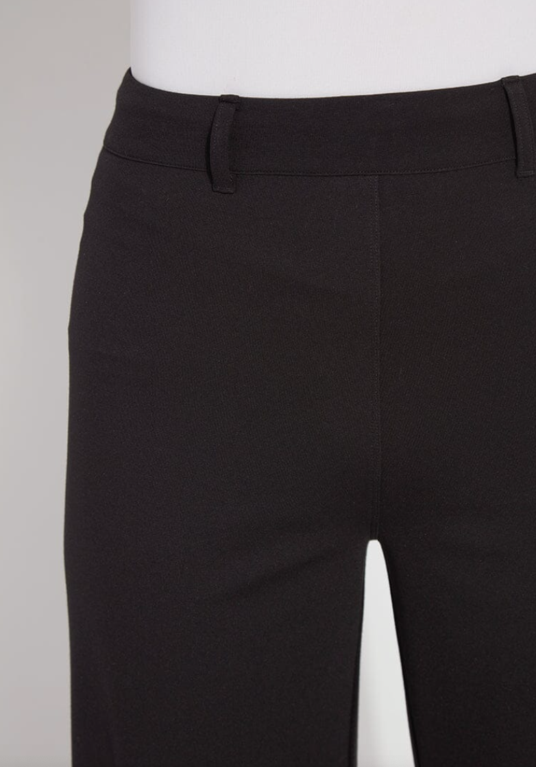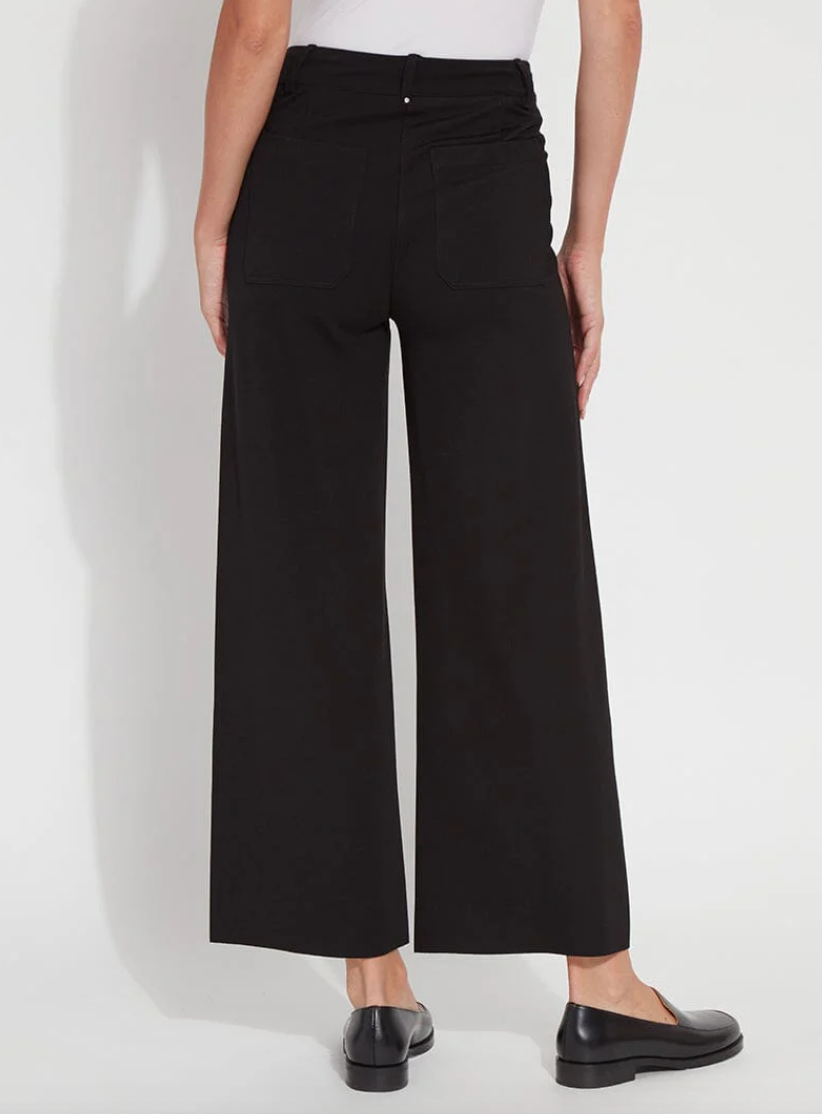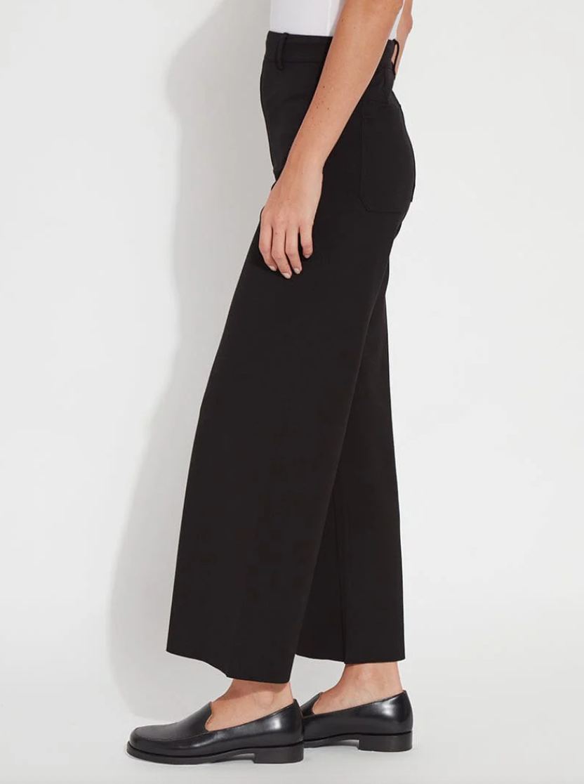 Elevate your everyday style with the Erin Hi Waist Ponte—a game-changer for anyone craving comfort without compromise. Crafted from luxuriously lightweight 4-way stretch Ponte, this high-waisted wonder features a concealed patented smoothing waistband that keeps you looking sleek all day long. The extra-wide leg flows beautifully without side seams, while back patch pockets and a gunmetal stud detail add just the right amount of edge. With a cropped 28" inseam and raw-edge hem that's easy to customize, these pants transition seamlessly from office to weekend. Pair with the Connie Slim Button Down and sneakers for an effortlessly chic look.