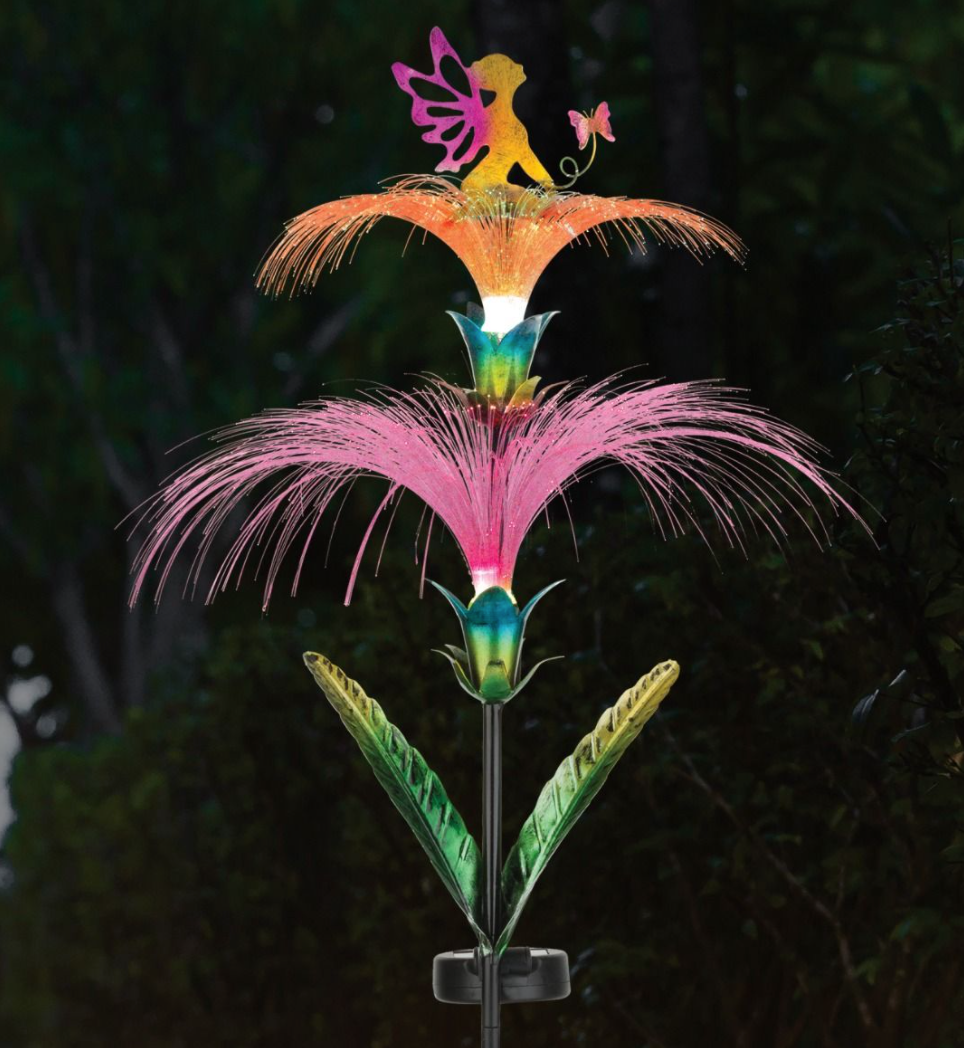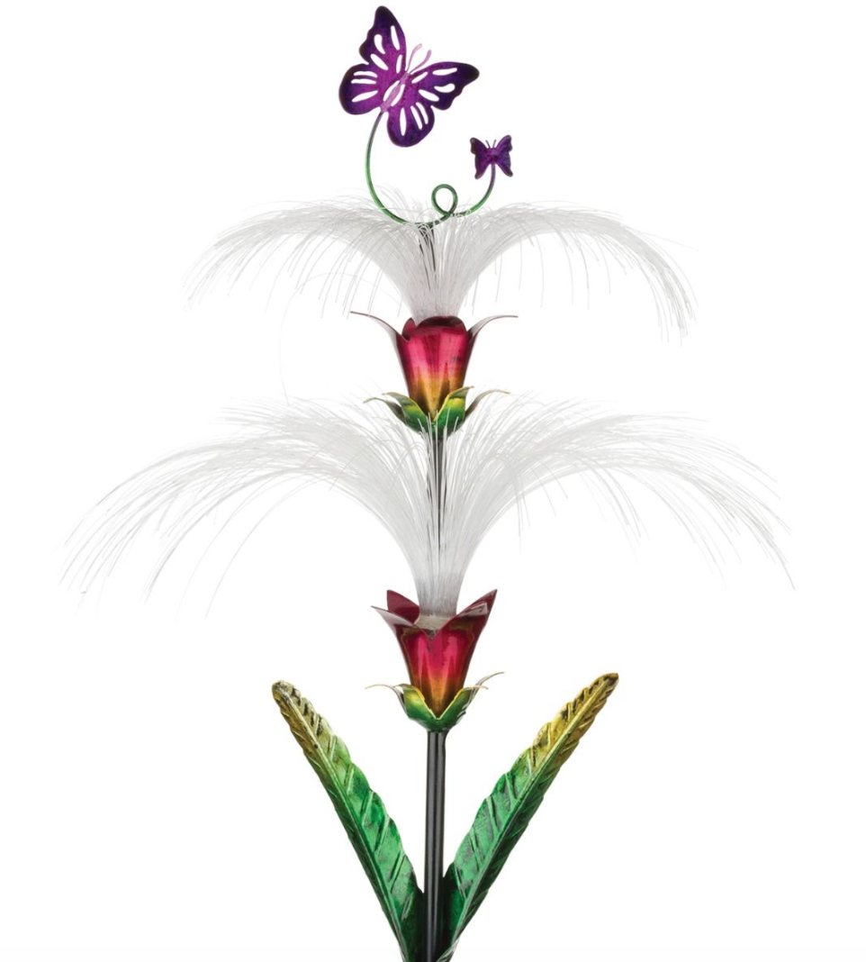 Bring magic to your garden with the Fountain Solar Stake! This playful fiber optic fountain features hundreds of color-changing filaments that twinkle like a water fountain, dancing gently in the breeze. Choose from three charming styles—Bee, Butterfly, or Fairy—to brighten your outdoor space. With waterproof solar panels, weather-resistant paint, and replaceable rechargeable batteries, it glows beautifully for 6-8 hours each night, adding a whimsical touch to your evenings.