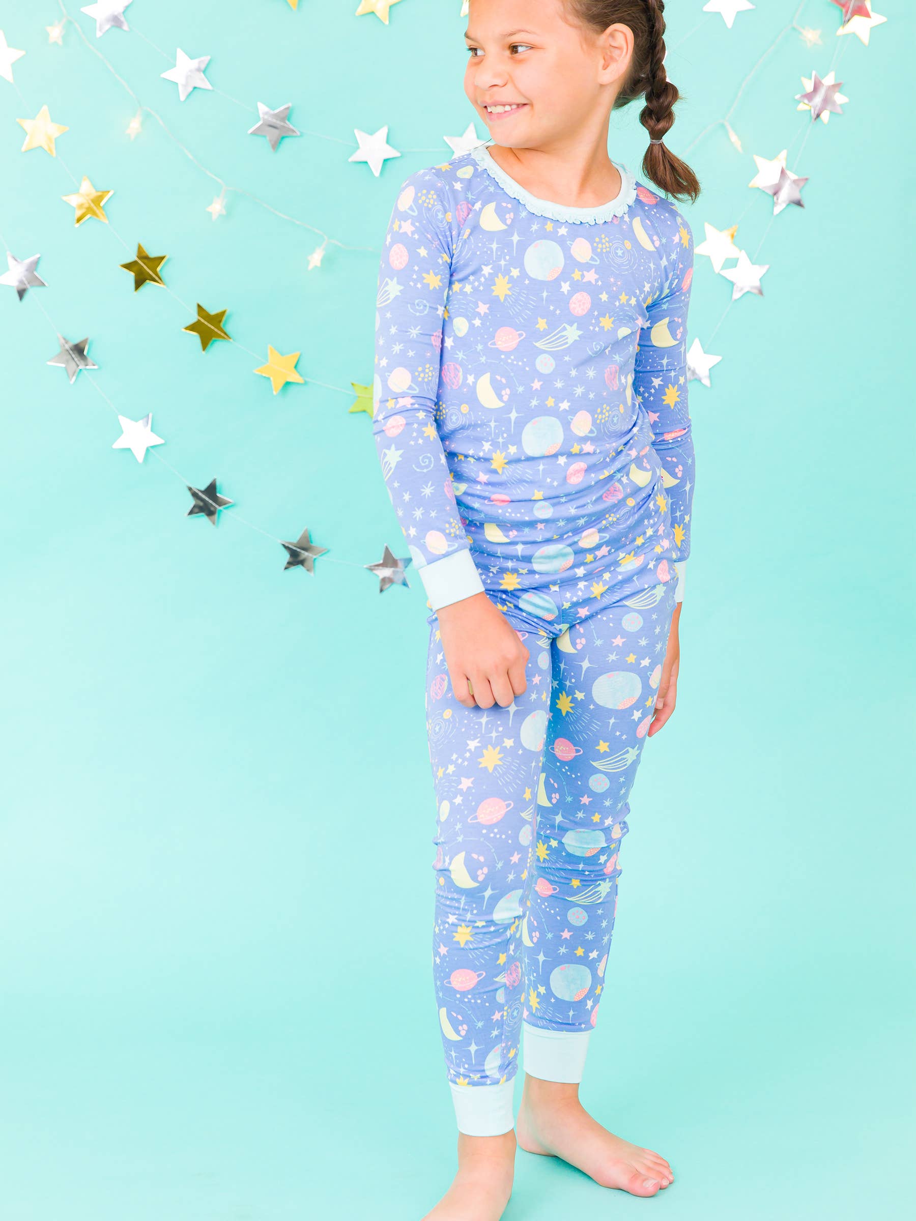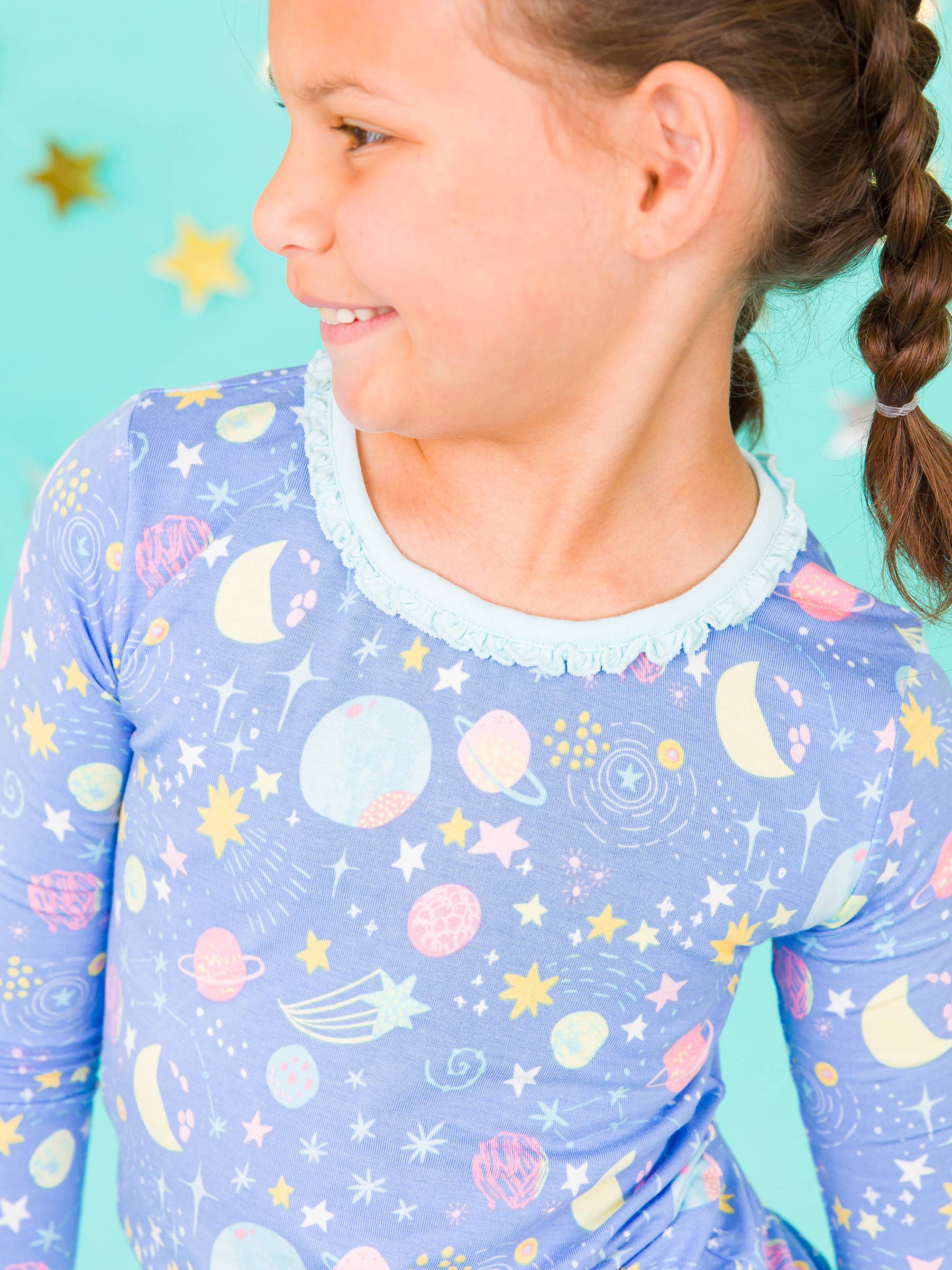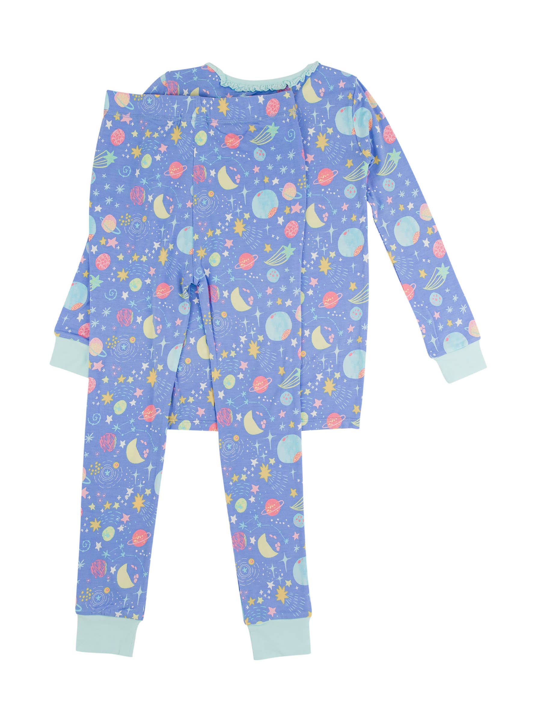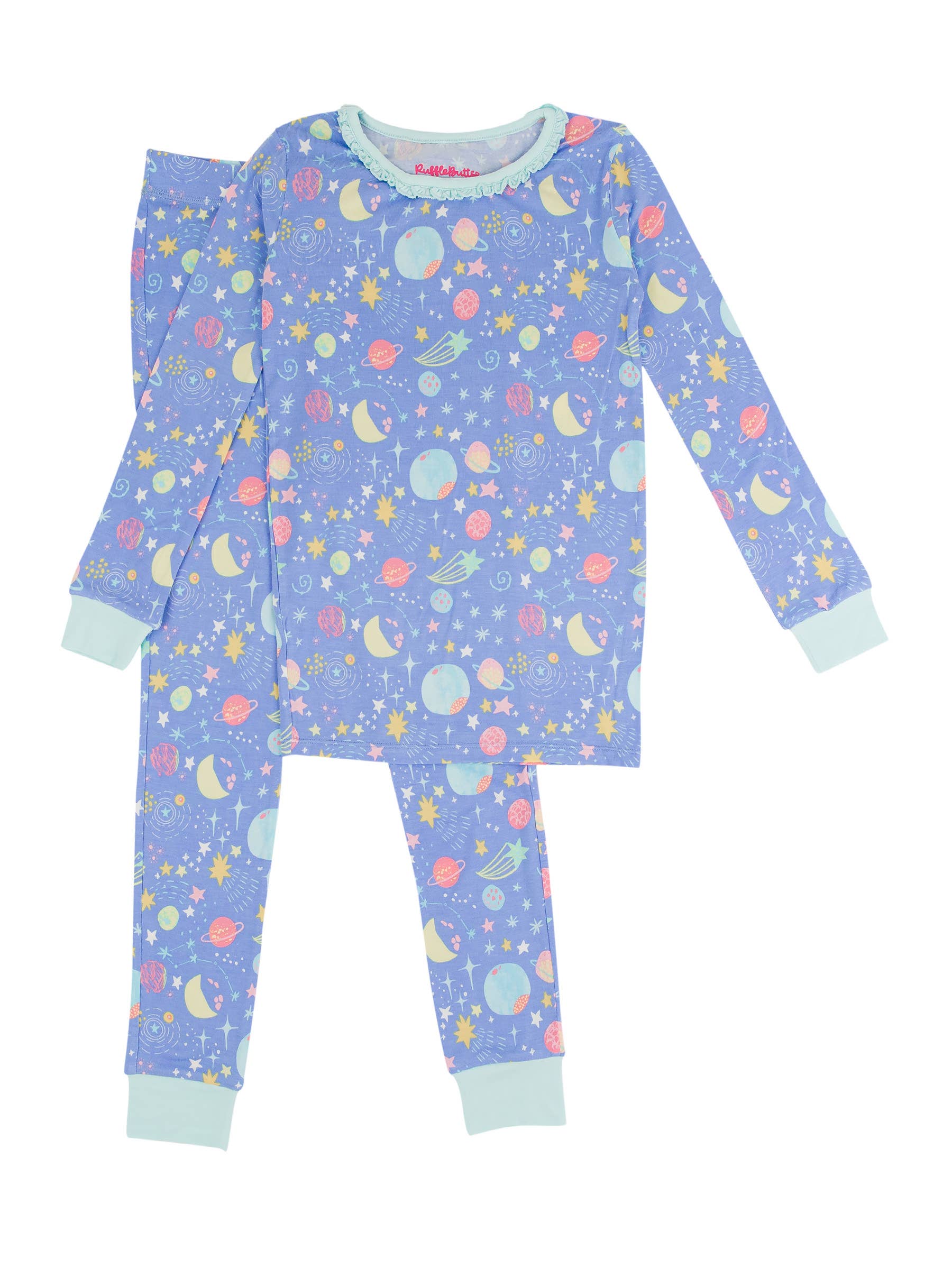 Girls Starry Dreams Bamboo Viscose Ruffle Long Sleeve Pajama Set