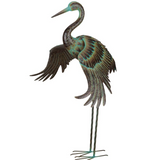 Bring a touch of whimsy to your garden with this large Green Patina Crane! Featuring spread wings and Regal’s original green/bronze finish, it’s a life-size bird full of feathered charm. Weather-resistant paint keeps it looking fresh, whether it stands proudly on its own or stakes into the ground with the included U-stake. Pair it with them together to double the fun and feathered flair!