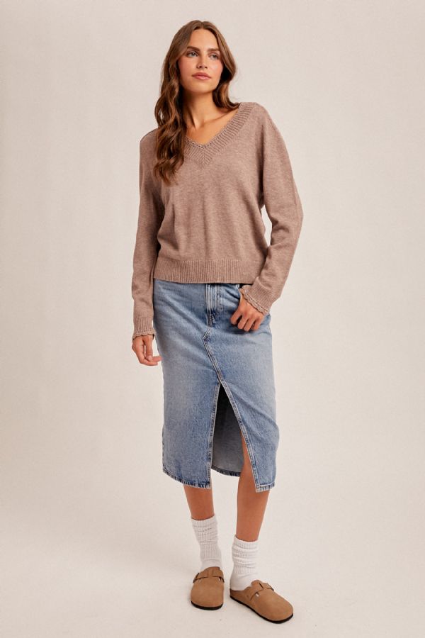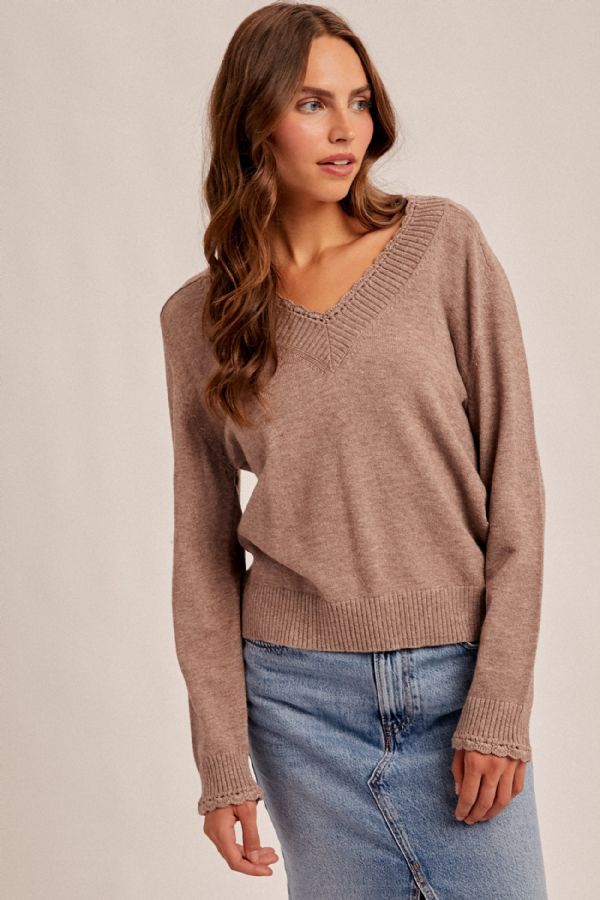 Scalloped Edge V-Neck Sweater
