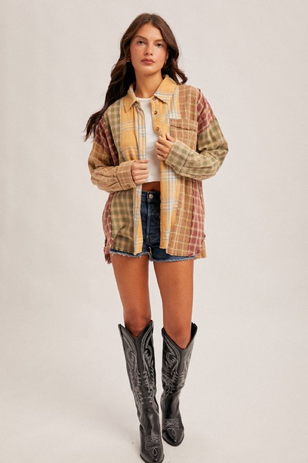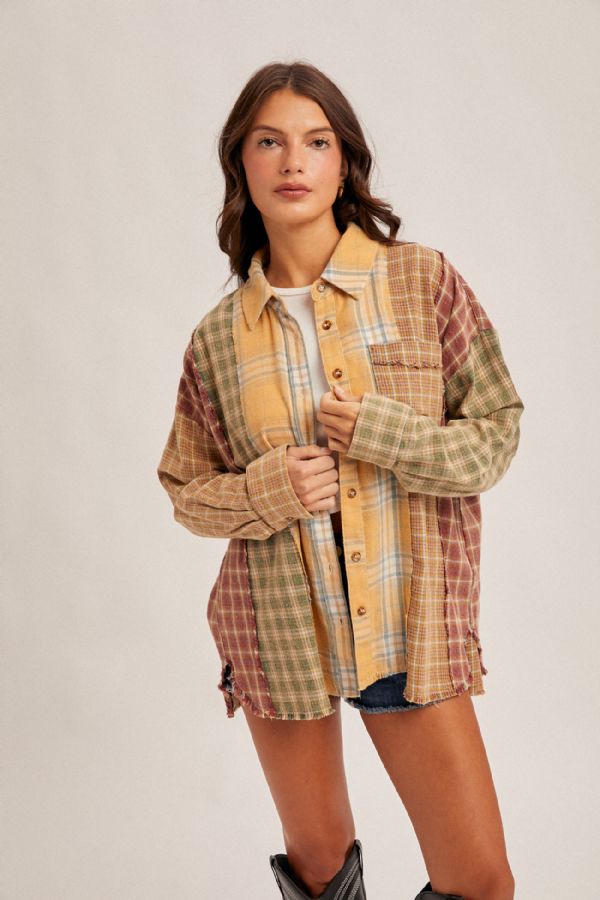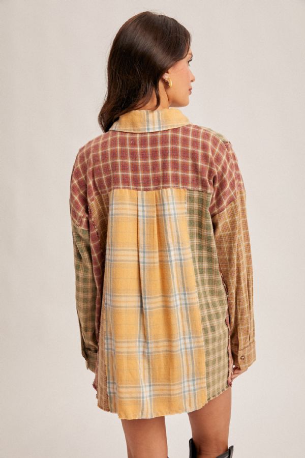 Stay cozy and stylish in this Plaid Oversized Snow Wash Button Down Shirt! Crafted with a soft blend of 60% polyester and 40% cotton, it offers warmth and comfort without weighing you down. Its oversized fit adds a playful, laid-back vibe perfect for layering or lounging