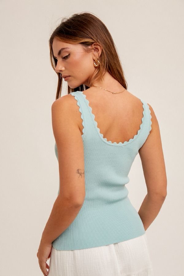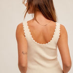 Soft, stretchy, and undeniably cute—this scalloped edge sweater tank is your new go-to layering piece. The luxe rayon-nylon blend drapes beautifully while maintaining its shape, and those delicate scalloped edges add just the right amount of flirty detail. Perfect for pairing with everything from denim to dresses, this versatile tank transitions seamlessly from season to season. Comfort meets style in one irresistible package.