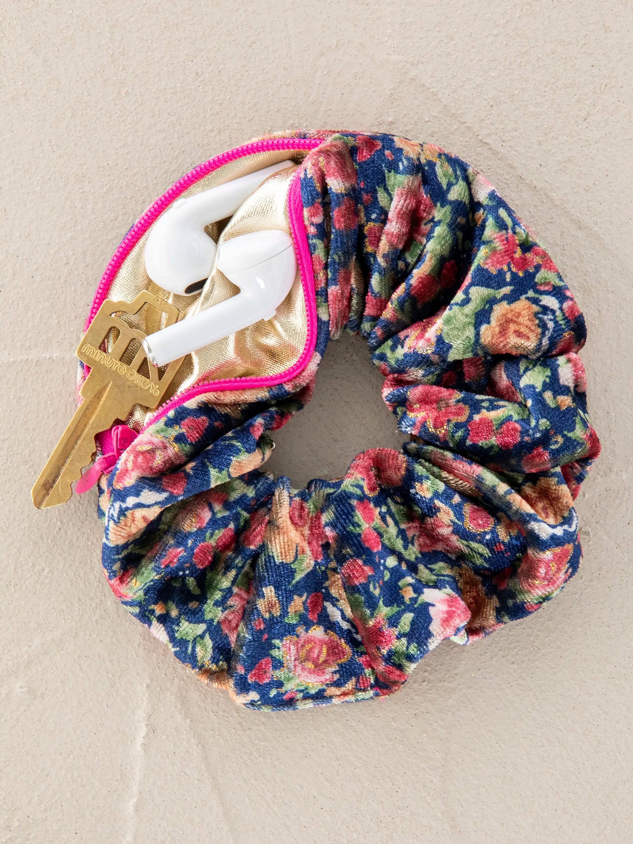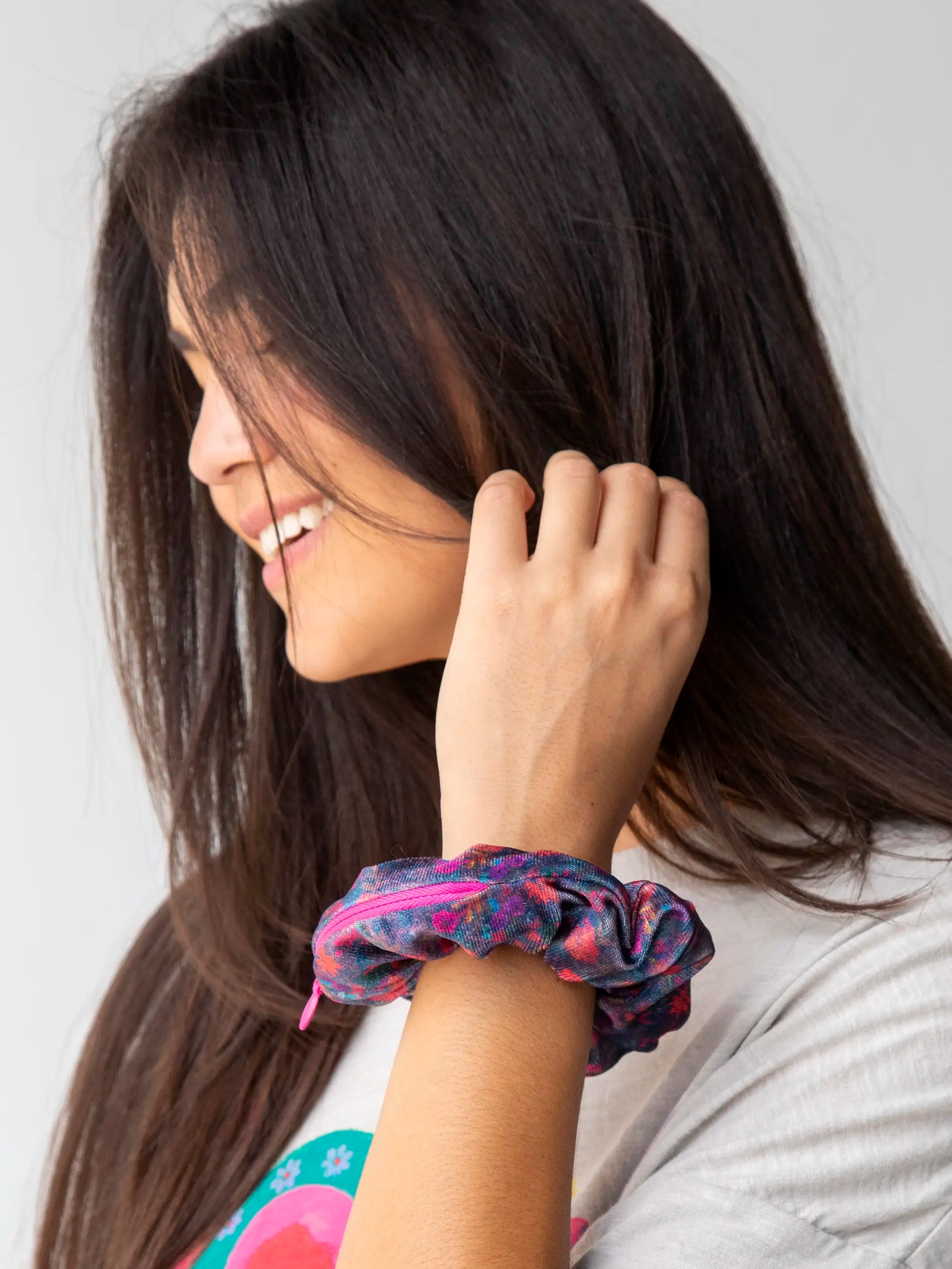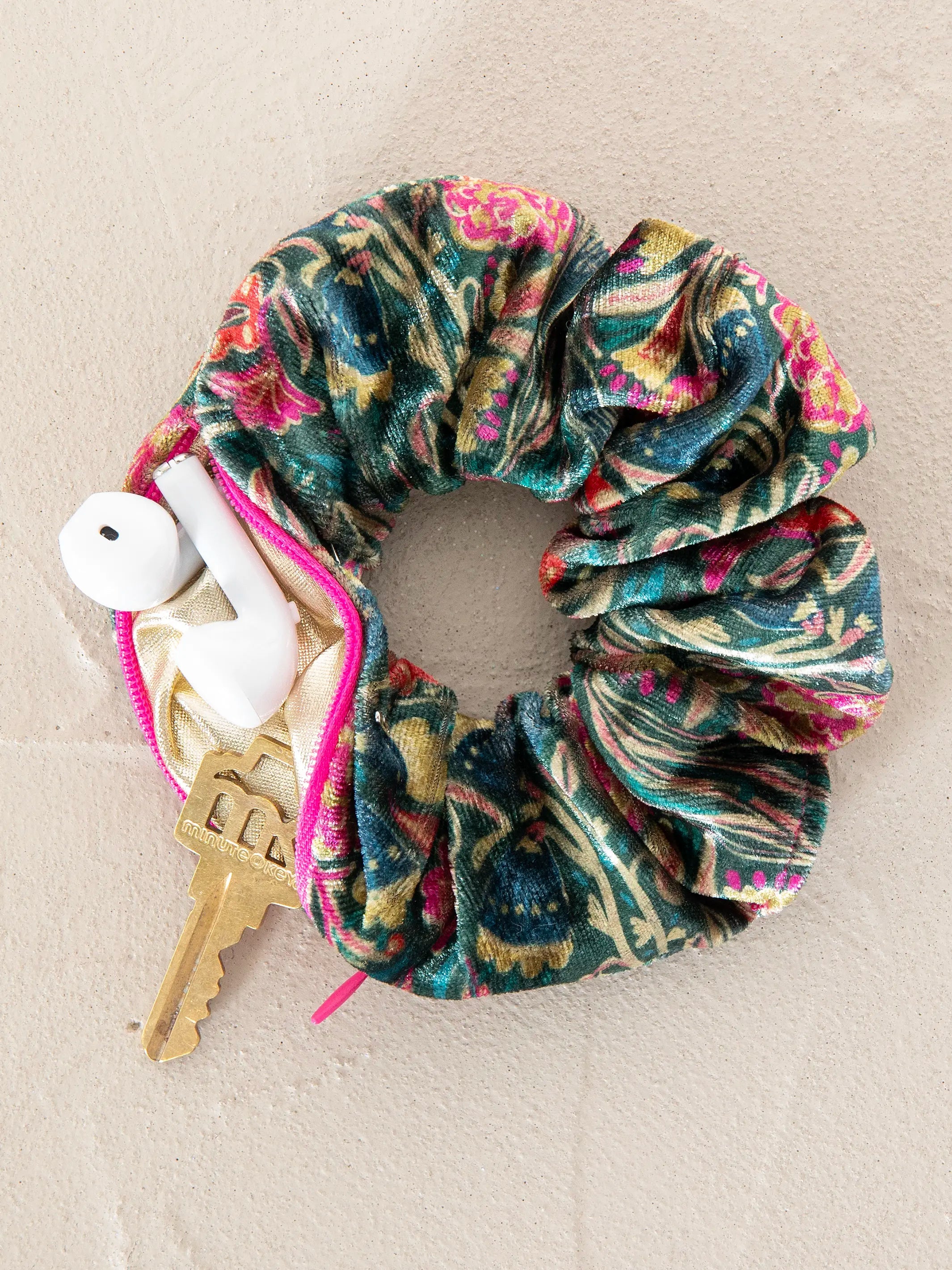 The Hideaway Scrunchie is the perfect accessory for anyone on the go! Made with fully lined velvet and a hidden zipper, it not only looks stylish, but also keeps your valuables safe. No more worrying about losing your house key or other small items with this convenient scrunchie. It's also easy to care for with simple hand washing and laying flat to dry.