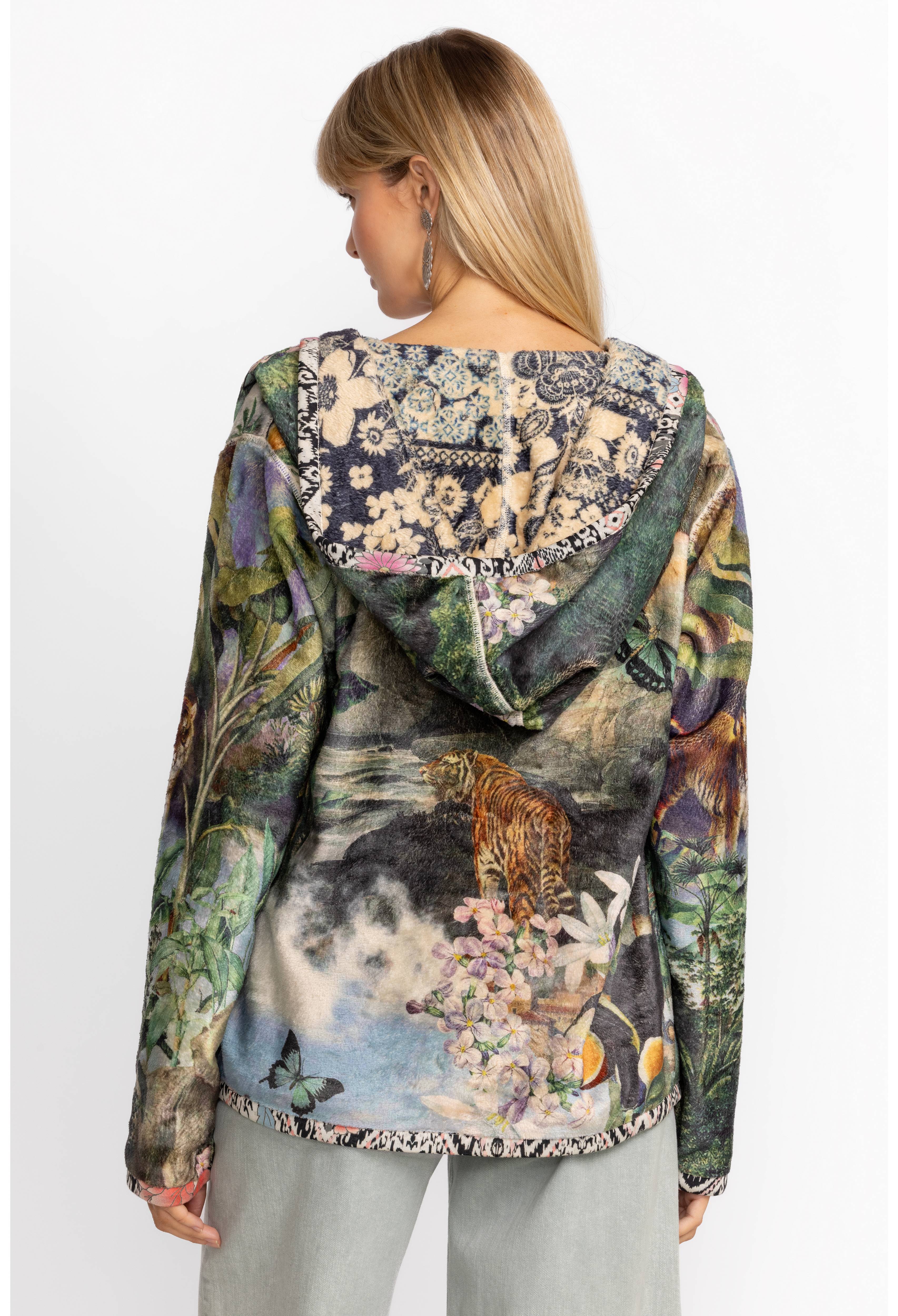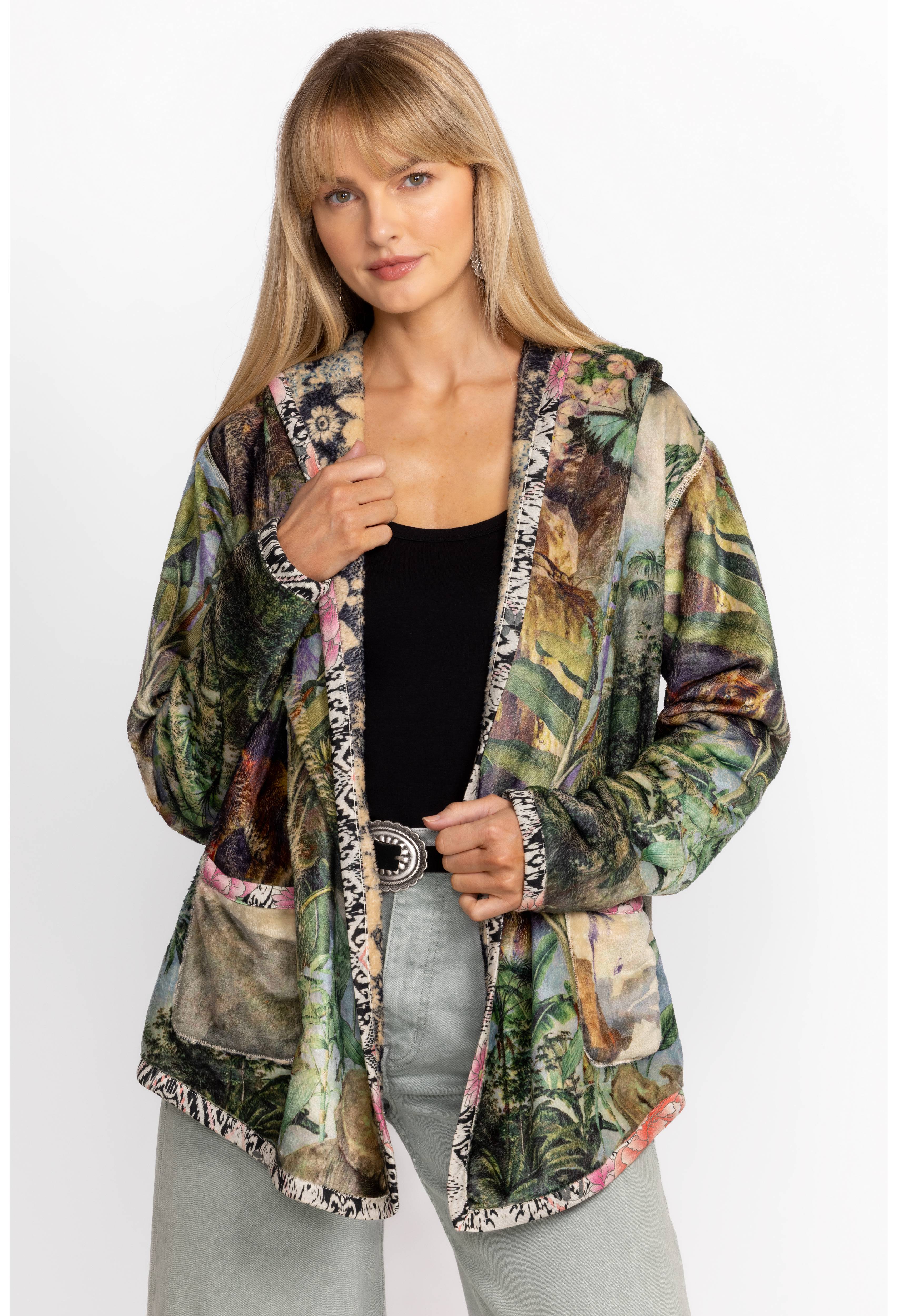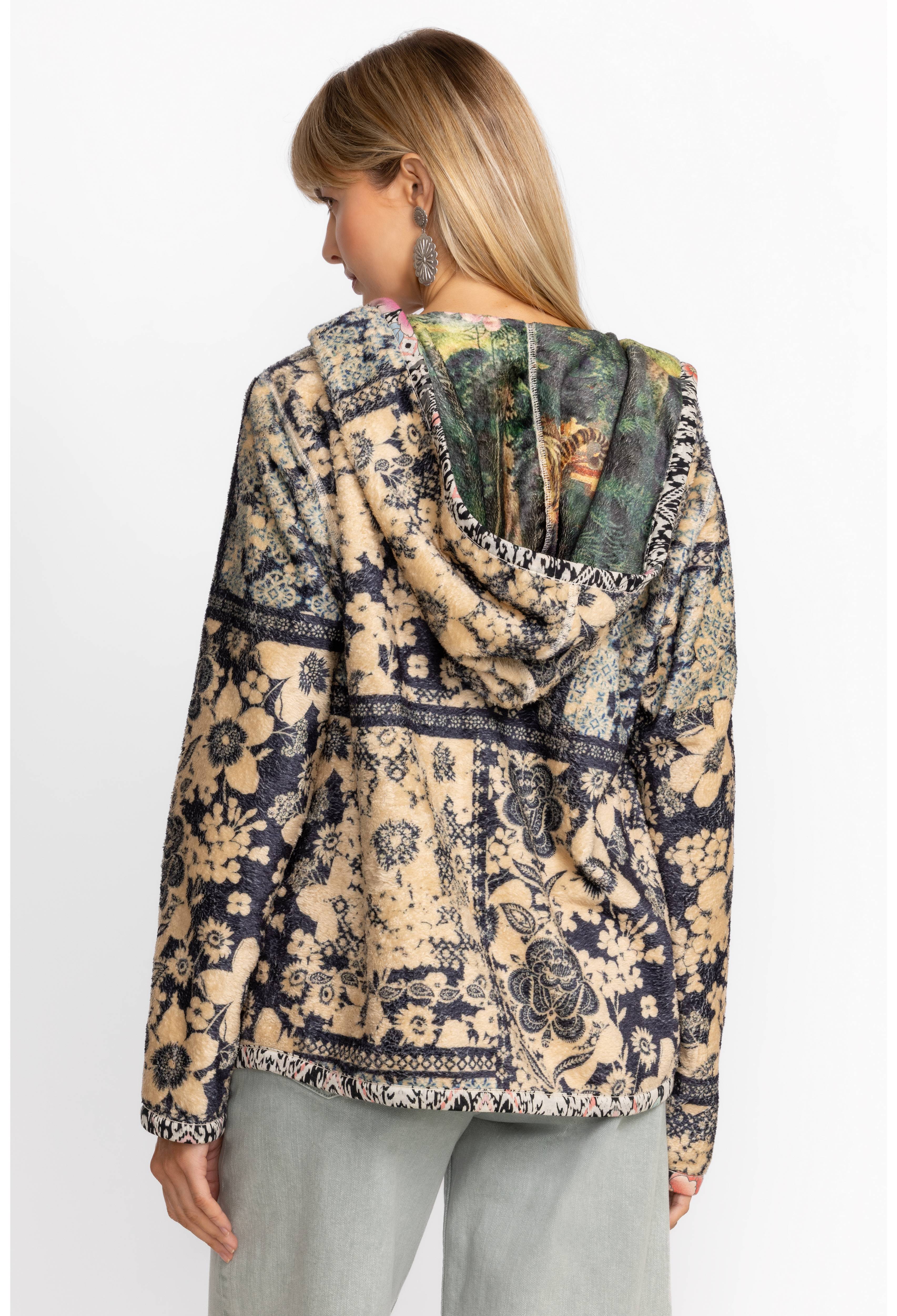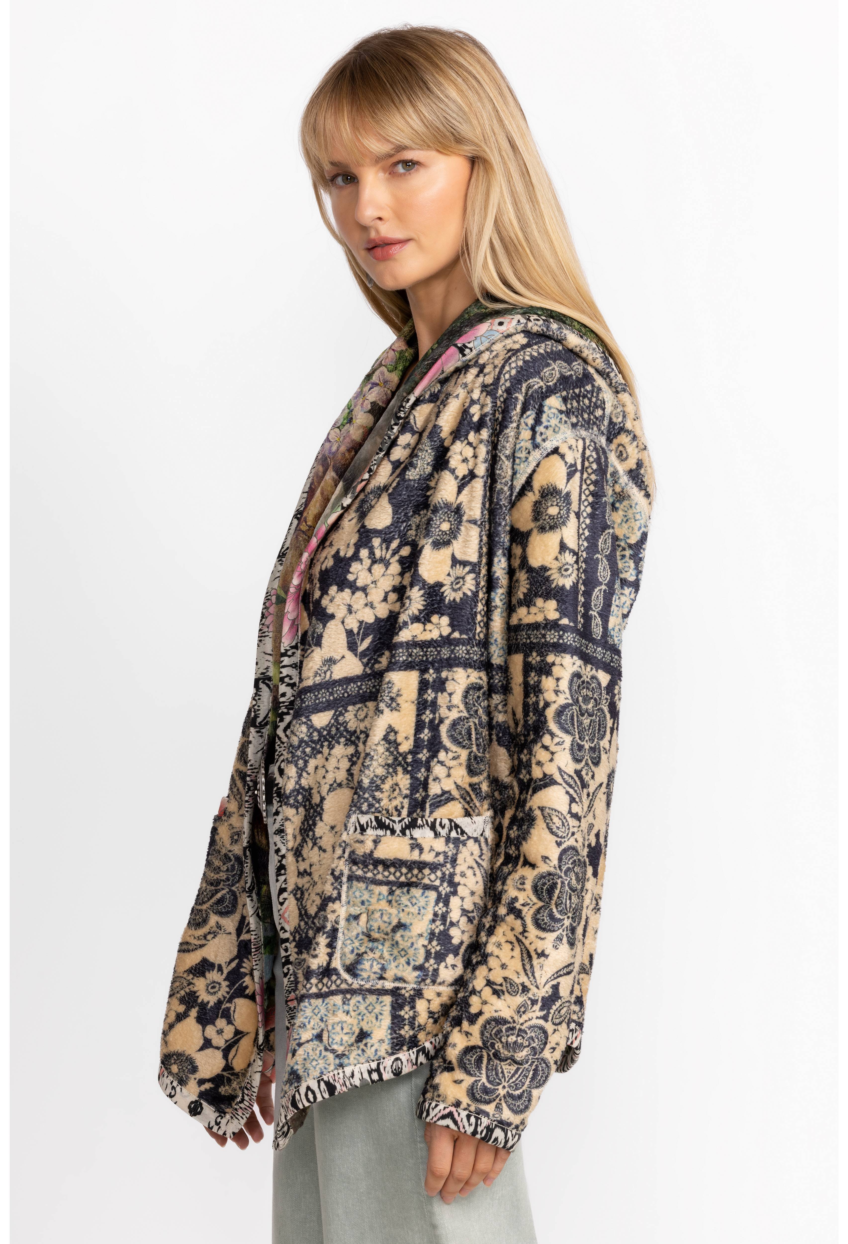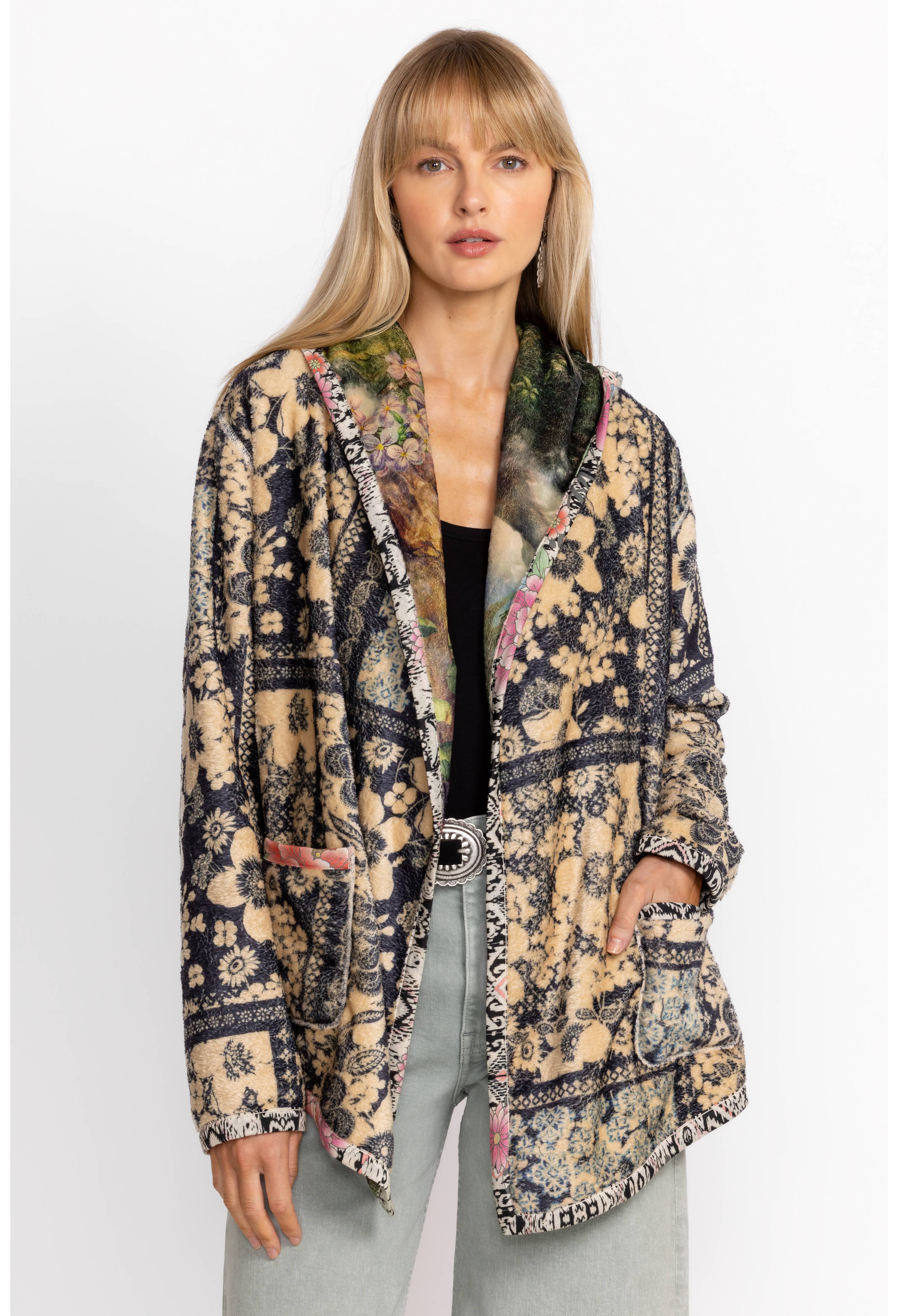 Introducing the Joan Sherpa Jacket - the ultimate in versatility and comfort. With two unique designs, this fully reversible jacket offers endless options for your wardrobe. Its open front and attached hood make for a cozy fit, while the sherpa lining and slip pockets add functionality. Perfect for a casual weekend look!