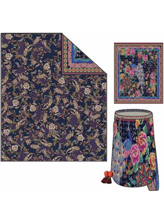 Indulge in luxury with the Laurel Canyon Cozy Blanket. Perfect for travel, this reversible blanket features a unique tassel tie and separate bag for easy storage. Stay warm and stylish on your journeys. Made of 100% polyester, measuring 75" x 68". Machine washable for convenience.