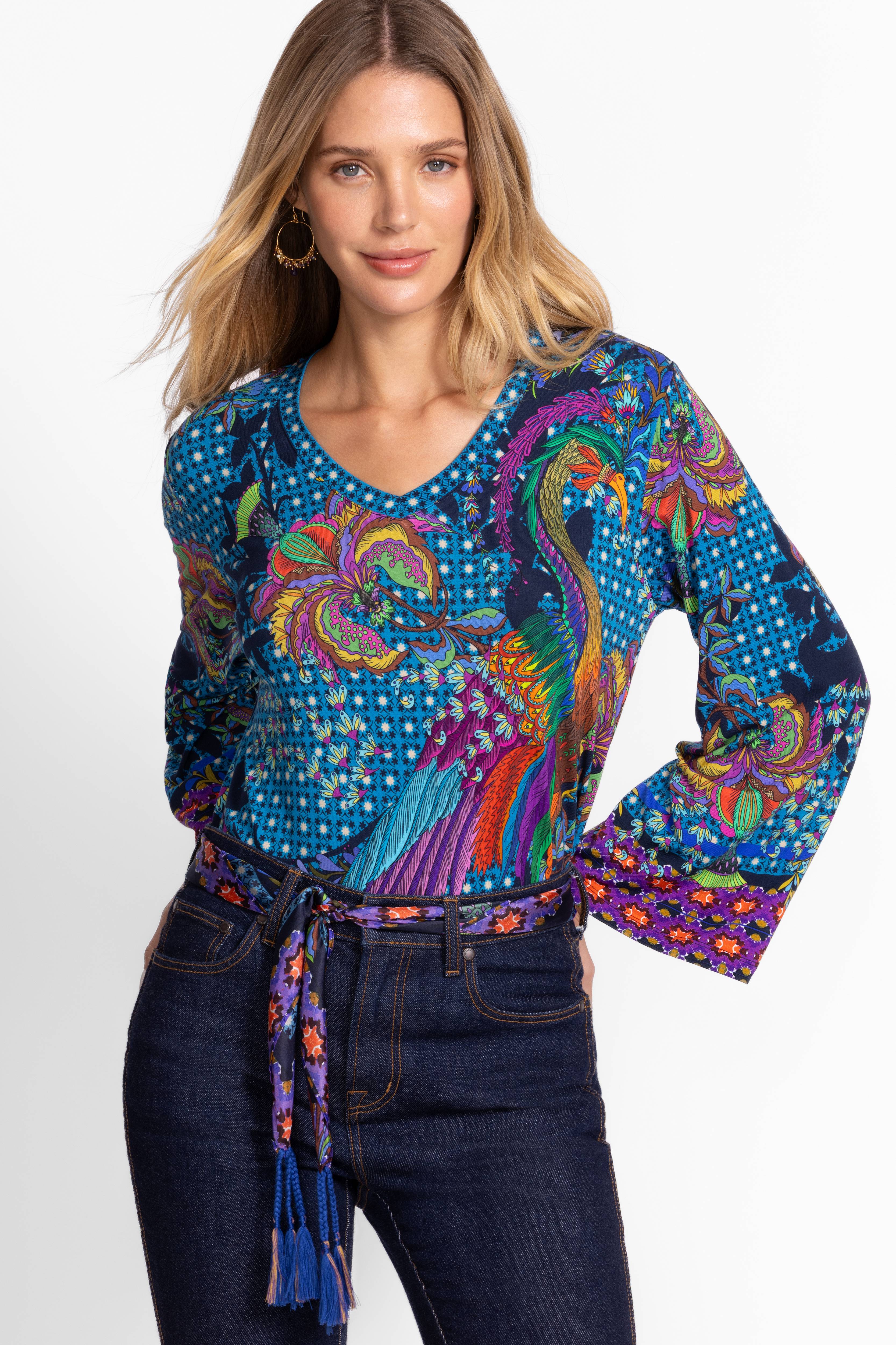 Light and breezy with just a touch of stretch, the Janie Favorite V-Neck Kimono Sleeve Tee pops with vibrant colors and eye-catching patterns. Its relaxed fit and flowing kimono sleeves bring effortless style, while the fun contrasting cuffs add a cheeky twist. Perfect with your favorite denim and playful flats, it’s ready to brighten your casual wardrobe with comfort and flair.