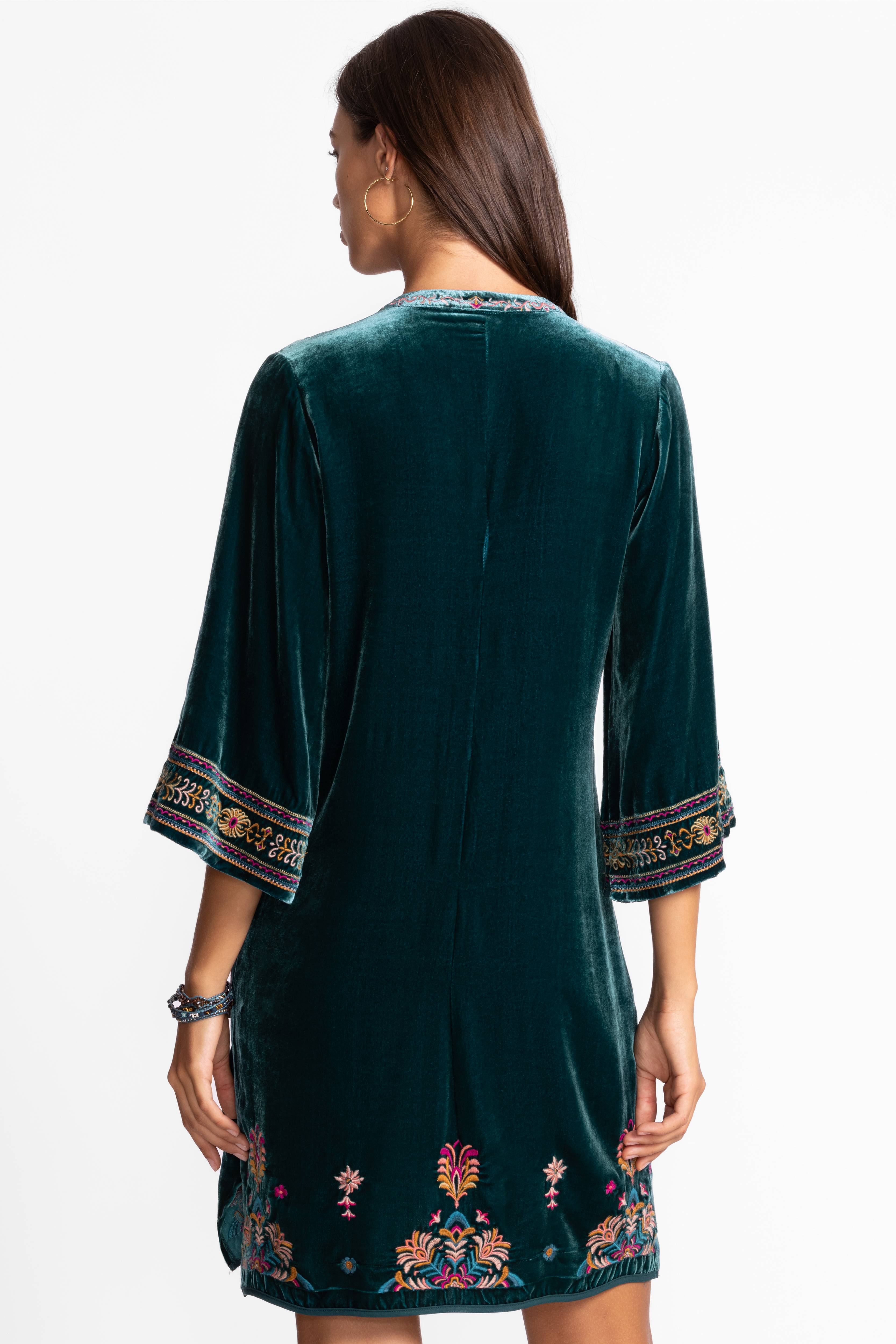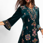 Slip into the Velvet Tie Front Kimono Dress—Brandi, where silky softness meets show-stopping style. This playful piece features a split V-neckline with a beaded tassel tie, wide kimono sleeves, and colorful embroidered accents that bring every look to life. Perfect for sunny days or moonlit nights, pair it with wedge heels and statement jewelry to turn heads wherever you go.
