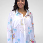 The Rachelle Shirt combines effortless style with comfort. Crafted from soft tissue cotton, this woven piece offers a lightweight, breathable feel perfect for layering or wearing solo. The delicate fabric drapes beautifully while maintaining its shape, making it an ideal addition to any wardrobe for casual days and relaxed occasions.