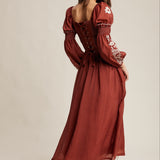 Embroidered Square Neck Puff Sleeve Maxi Dress