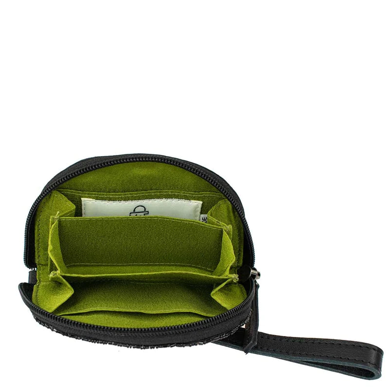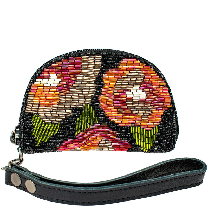 Elevate your fashion game with the Socialite Wristlet from Mary Frances. Hand-sewn beads make this wallet a blooming beauty. Features 3 compartments, 2 card pockets, and a removable leather wristlet strap for on-the-go ease. Each one is a unique work of art, so slight variations may occur.
