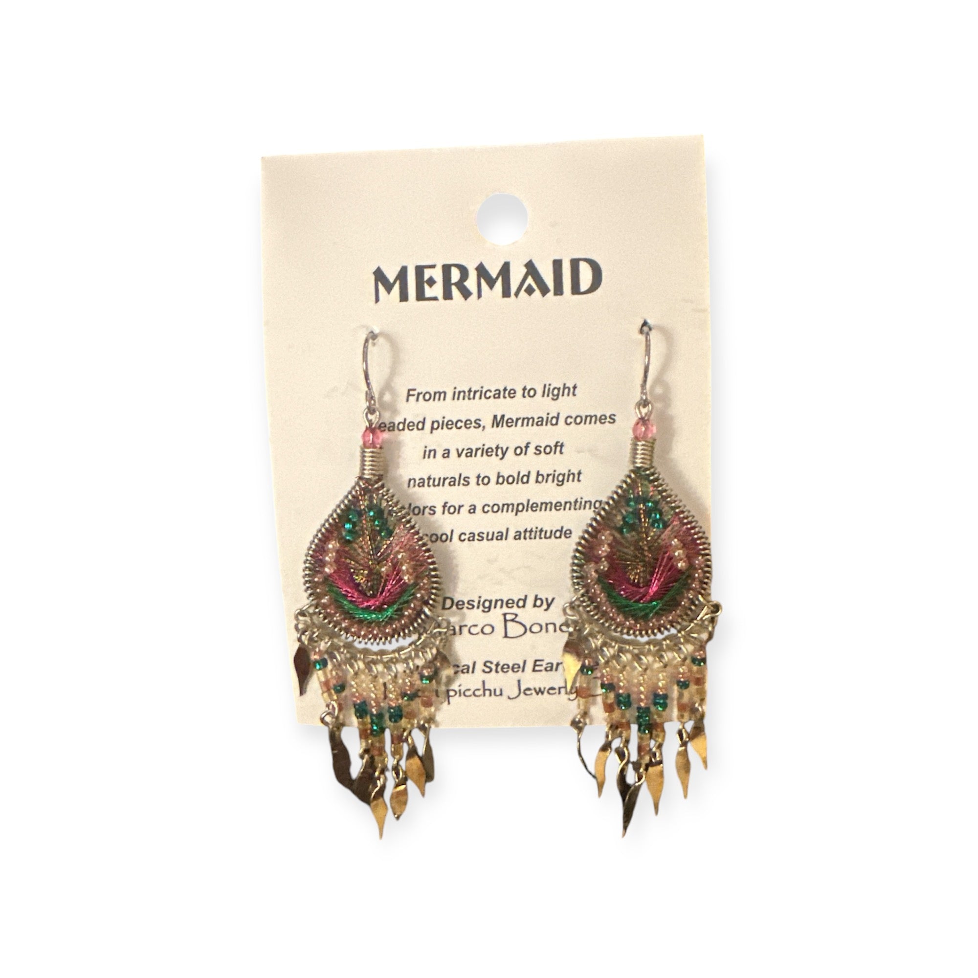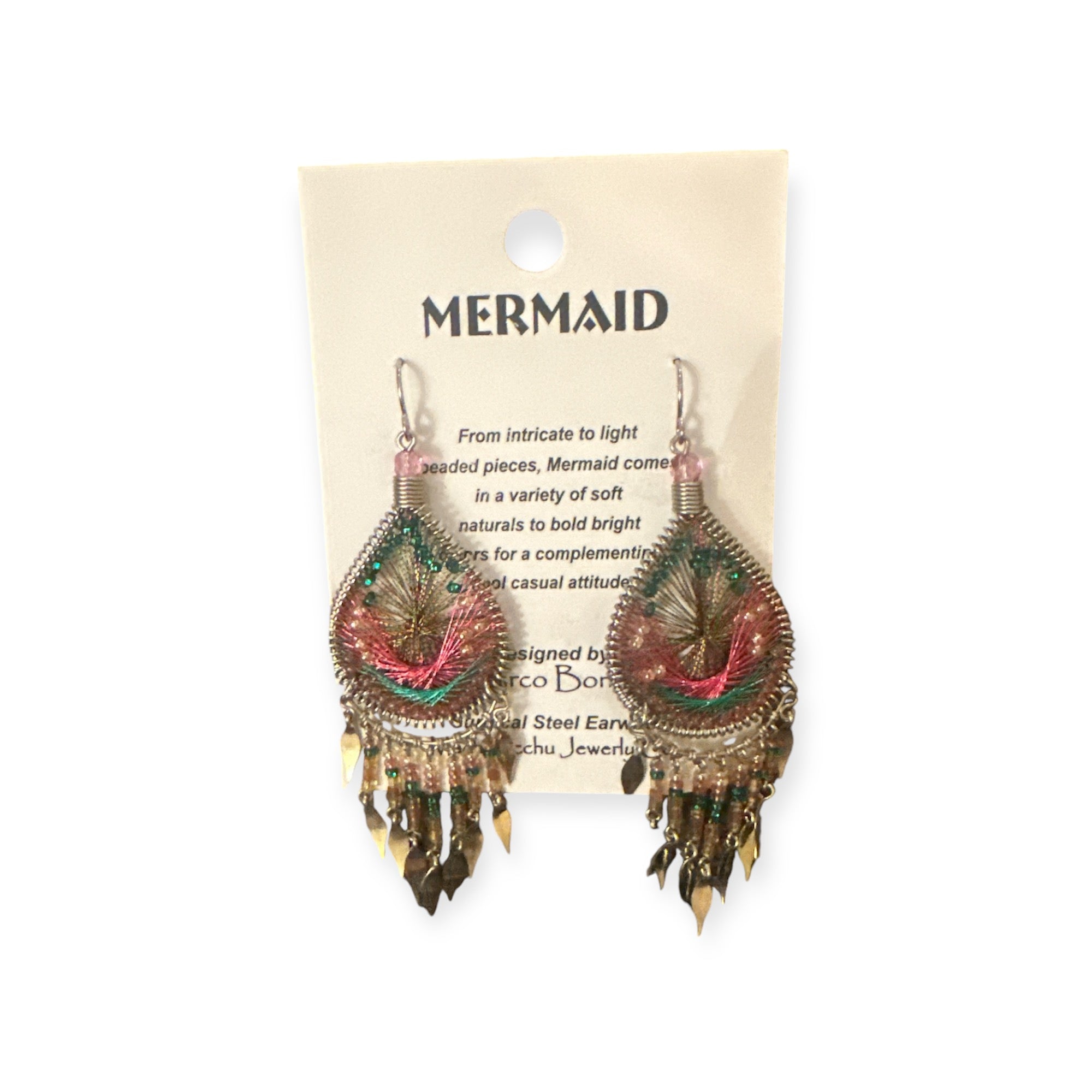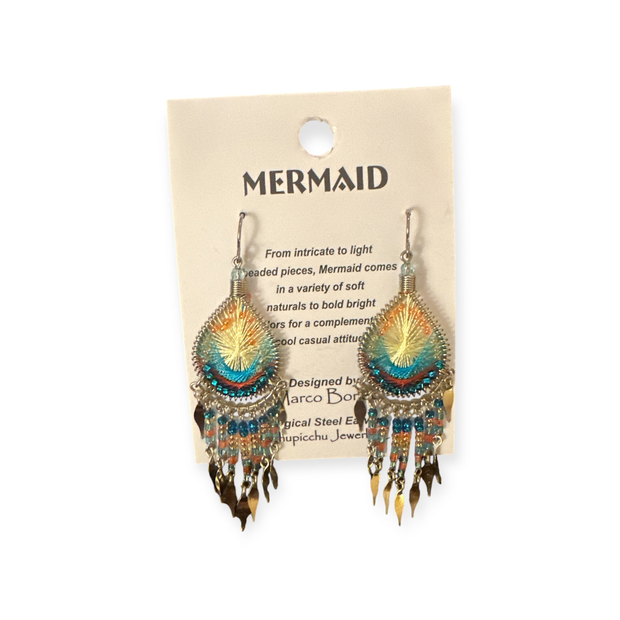 From intricate to light beaded pieces, Mermaid comes in a variety of soft naturals to bold bright colors made with silk thread for a complementing cool casual attitude.