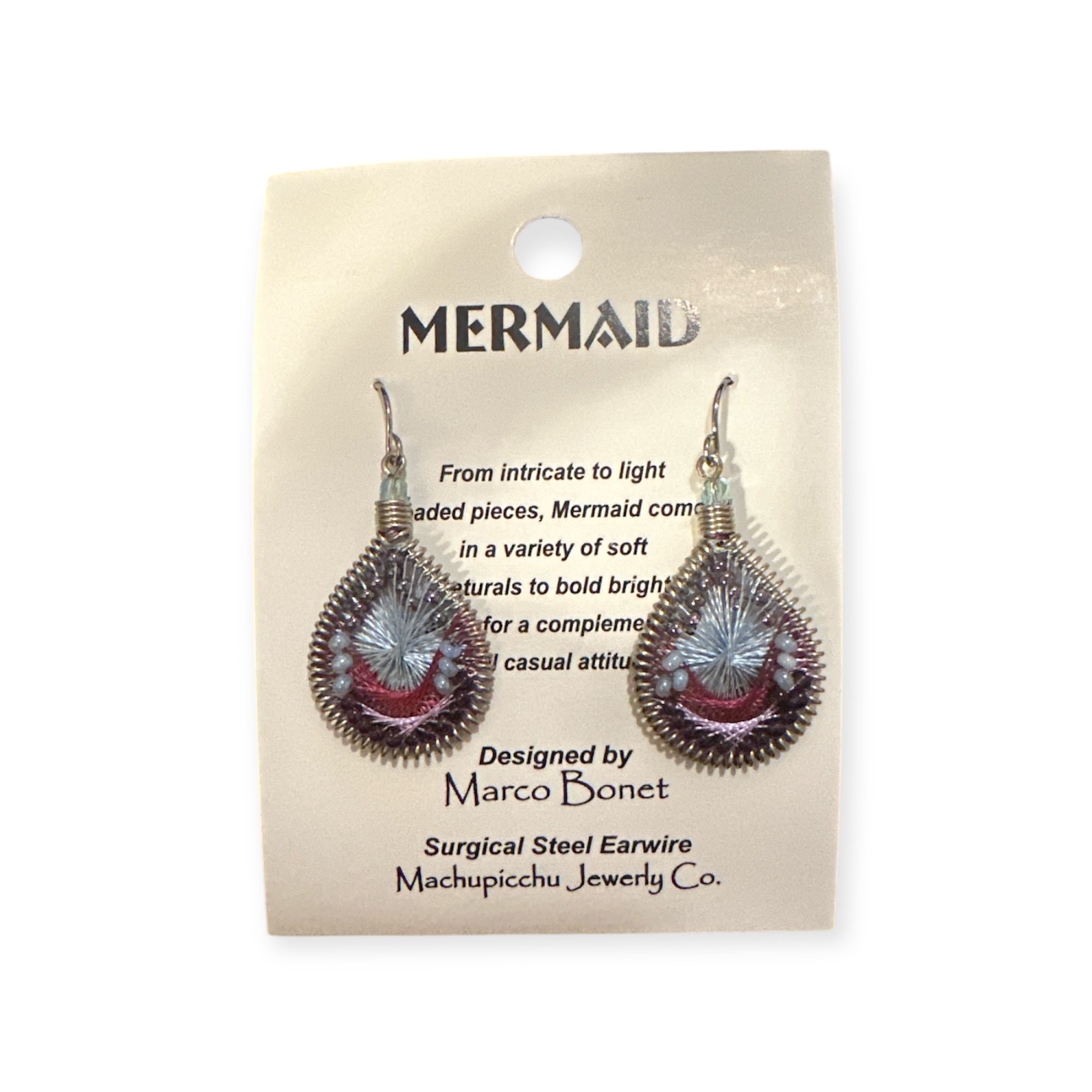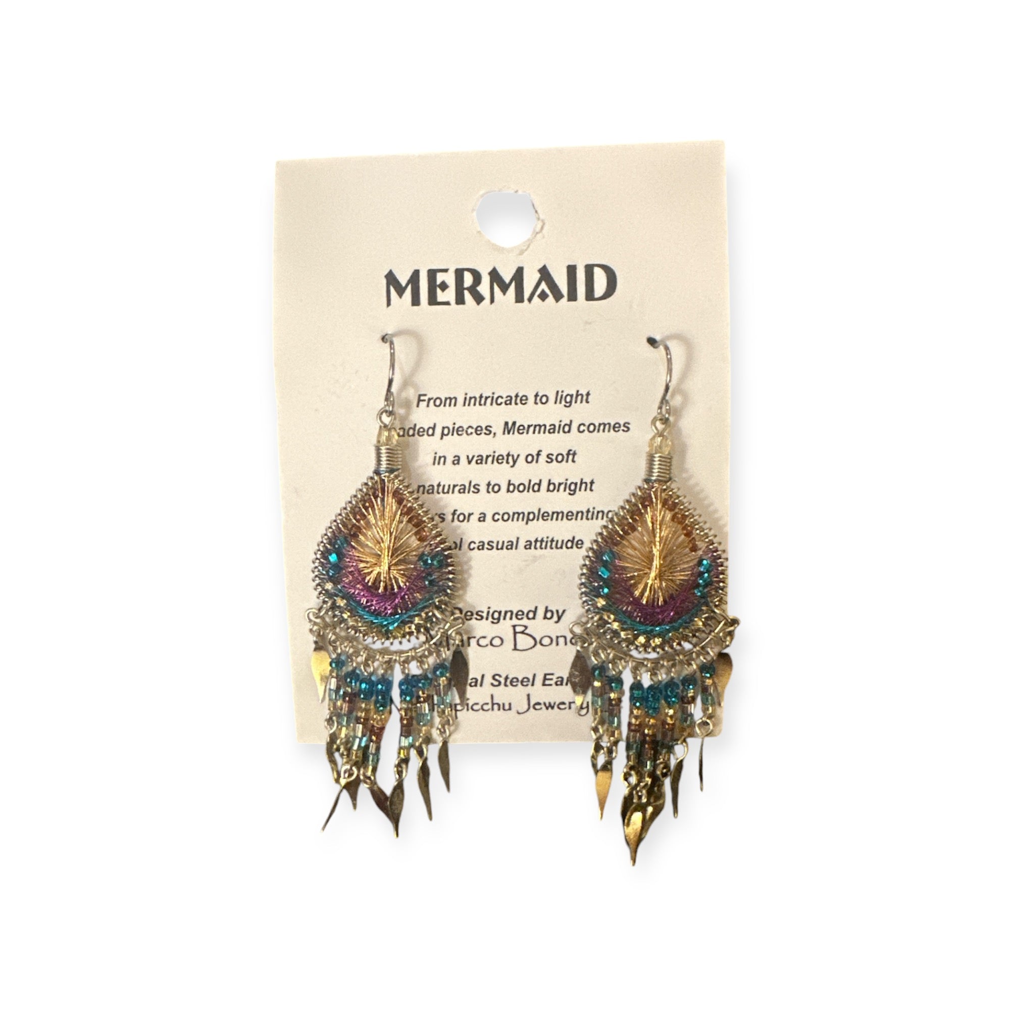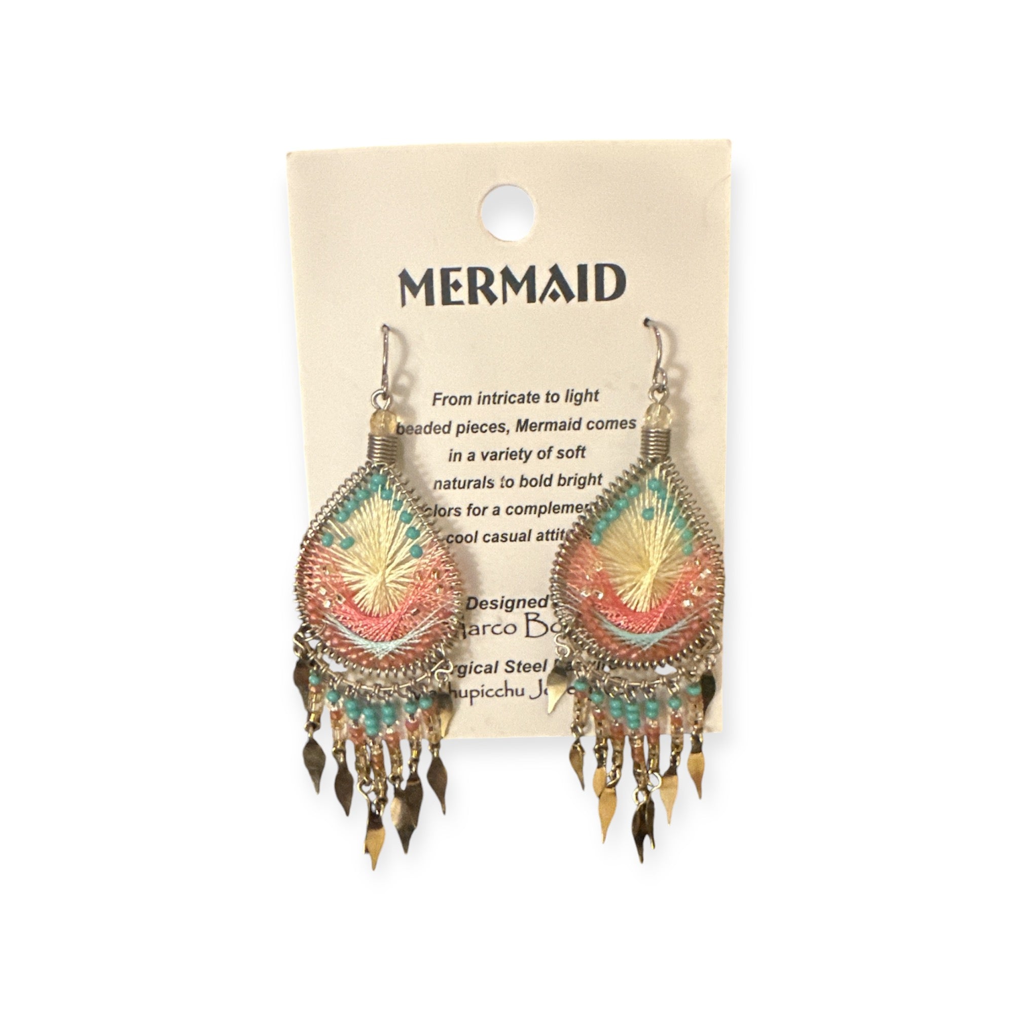 From intricate to light beaded pieces, Mermaid comes in a variety of soft naturals to bold bright colors made with silk thread for a complementing cool casual attitude.