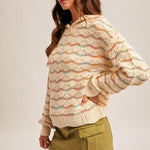 Embrace effortless style with this multi-color pointelle stitch hooded sweater. Crafted from a soft acrylic and nylon blend, it features an intricate crochet texture and relaxed loose-fit silhouette perfect for layering or wearing solo. The cozy hood adds warmth and versatility, making it ideal for casual days or weekend getaways. Mix and match with your favorite basics for endless outfit possibilities.