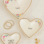 Adorable ceramic trinket dishes that nest together for clever storage! This charming set of three features graduated sizes—small (1.75" W x 1.5" H), medium (2.25" W x 2" H), and large (2.75" W x 2.5" H)—perfect for organizing jewelry, coins, or tiny treasures. Handcrafted with love by Natural Life in Jacksonville Beach, FL, each dish showcases a sweet heart design. Hand wash only; keep away from the dishwasher and microwave. Stack them up or display separately—either way, they're absolutely delightful!