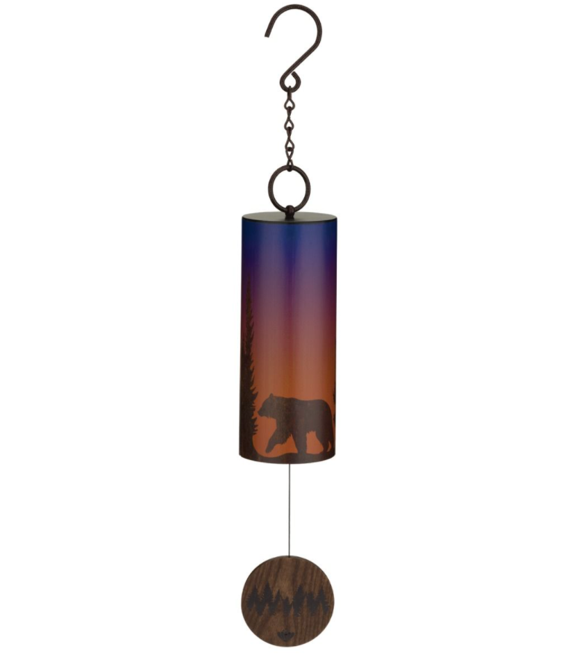 Indulge in the elegance of our Night Sky Wind Bell, featuring a stunning setting sun scene and a Bear roaming in the woods. Experience the deep, melodic sound of the tubular bell, complete with an engraved wood sail and chain & hook for easy hanging. Available in 3 styles, perfect for any luxury outdoor space.
