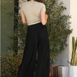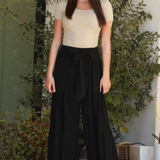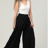 These lightweight black wide-leg pants feature a playful front tie detail that adds a touch of charm to your outfit. Their flowy fabric moves with you, making them perfect for pairing with a breezy blouse or a cozy sweater. Effortlessly stylish and comfortable, they’re your new go-to for laid-back days or casual outings.