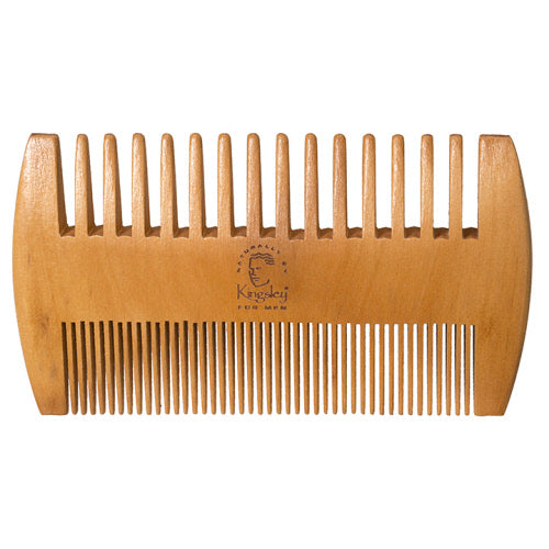 This Pearwood comb from Harry D. Koenig & Co. is an expertly designed beard comb, crafted from high- quality pearwood. Its handsome, juxtaposed design is perfect for keeping your beard groomed and looking sharp. It also comes with a protective case for easy storage.