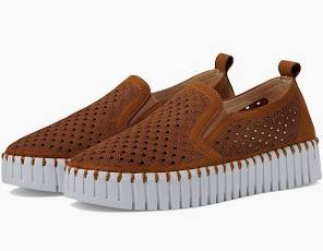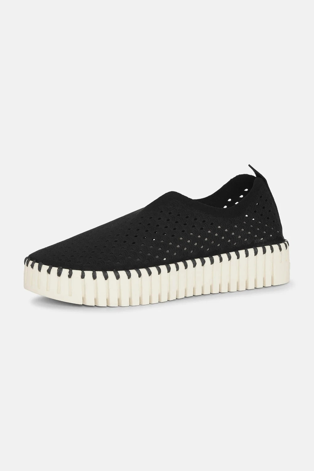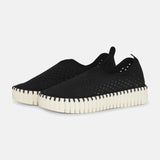Walk on air with this amazingly comfy shoe designed with all recycled materials. The body is made of recycled microfiber with a decorative laser cut pattern attached to the iconic Tulip outsole, made of 75% natural rubber and 25% recycled rubber, with match colored recycled thread, using no glue. The insole, lined with pig suede, has padding and support which ensures great comfort.
