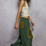 Embrace comfort and style with these playful Woodland Harem Pants. Crafted from soft, breathable 100% cotton double gauze, they feature a roomy fit and fun embroidered floral accents. Patch details and various pockets add practical charm, making these pants perfect for relaxed days filled with adventure.