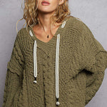 Cozy up in the Moss Pullover Hooded Sweater, featuring a playful v-neck design with a chic tie detail. This long-sleeve chenille top offers a roomy fit for ultimate comfort and style. Made from 100% polyester, it’s soft, warm, and perfect for adding a fun twist to your casual wardrobe.