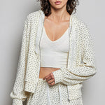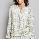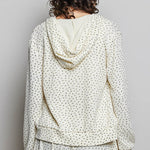 Wrap yourself in cozy comfort with this cream floral zip-up hoodie that's basically a hug you can wear! The soft printed knit fabric feels amazing against your skin, while the adorable allover floral pattern brings a sweet, feminine vibe to your everyday look. With a regular fit that's perfect for layering, a handy front pocket for your essentials, and a charming lace-trim hood loop detail, this long-sleeve beauty is your new go-to for casual days, coffee runs, and everything in between. Whether you're keeping it chill at home or stepping out in style, this hoodie delivers both comfort and personality!