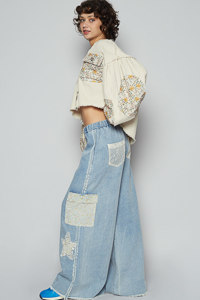 These Star Wide Leg Pants bring playful charm to your wardrobe with their comfy French terry fabric and relaxed wide-leg cut. Featuring a fun star patch, delicate lace detailing, and a vintage washed look with raw edges, they offer a perfect mix of casual and quirky style. Made from 100% cotton, they’re soft, breathable, and ready to brighten your day in solid color comfort.