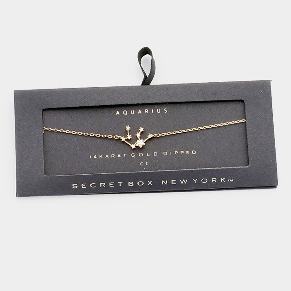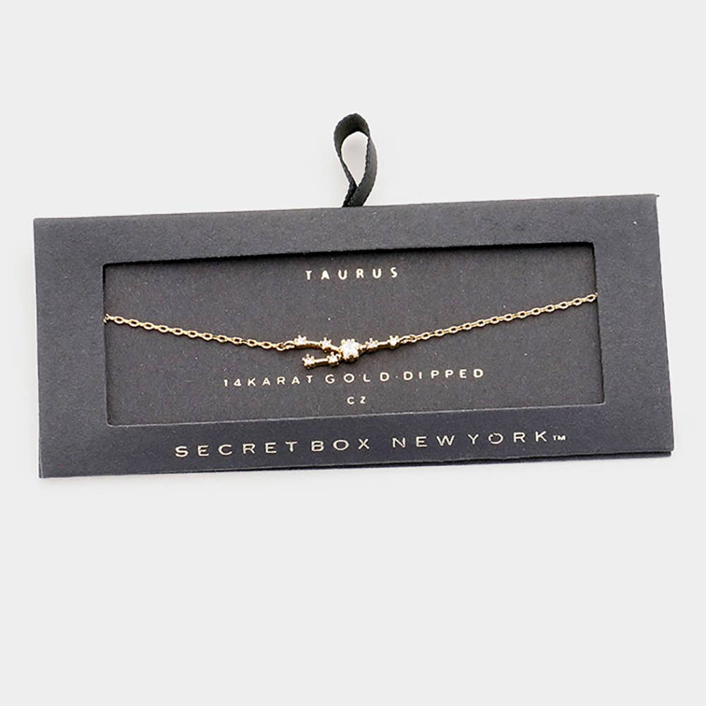 Secret Box _ 14K Gold CZ Zodiac Sign Charm Bracelet