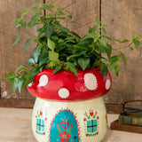 Add some whimsy to your home with our So Cute Mushroom House Ceramic Planter! Hand-sculpted from clay, this planter is perfect for indoor use or a covered porch. Fits most 4in plants, with a drainage hole. (Plant not included). Bring some personality to your plants!