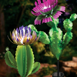 Bring a touch of desert magic to your garden with the Solar Cactus! This charming all-metal cactus features a hand-painted flower that lights up at night with a bright solar LED, highlighting its colorful stamens. Enjoy 6-8 hours of glowing fun after sunset, powered by waterproof solar panels and replaceable rechargeable batteries. Perfect for adding playful, eco-friendly illumination to your outdoor space!