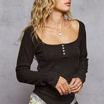 Elevate your everyday style with this Square Neck Knit Top—a versatile piece that's as comfy as it is chic! The flattering square neckline and fitted silhouette create an instantly polished look, while the soft knit blend (50% rayon, 30% polyester, 20% nylon) feels amazing against your skin. Featuring a subtle placket detail for added visual interest, this top transitions seamlessly from layered looks to standalone statements. At 23" in length with a 15" bust, it's designed to hug you in all the right ways. Whether you're dressing up or keeping it casual, this knit top is your new go-to favorite.