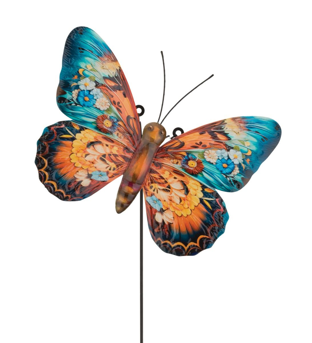 These Stake/Wall Decor feature artistic designs. They sit atop a large stake with a spring allowing it to move gently in the wind. Unscrew from the stake and use as wall decor!