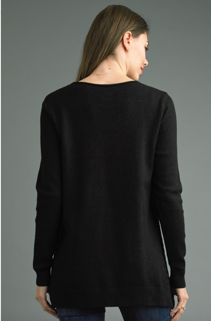 Cozy up in this V-neck Cable Detail Tunic that’s as fun to wear as it is soft! Made from a blend of viscose, nylon, and polyester, it drapes beautifully while keeping you comfy all day long. The charming cable knit adds just the right touch of texture to brighten up your casual look with playful style. Perfect for layering or solo adventures!