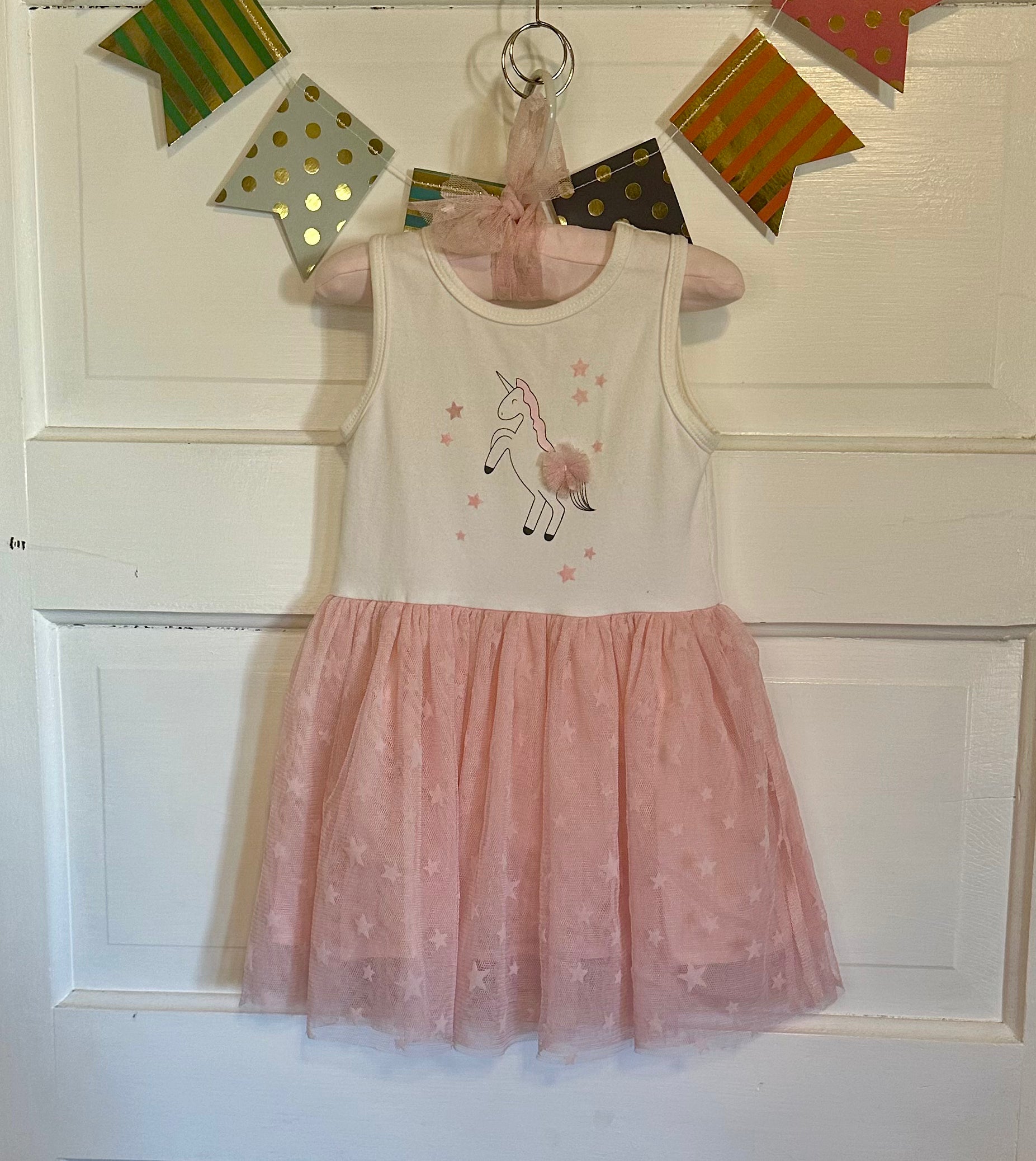 This onesie style dress features adorable unicorn graphics, snap bottom closure, and comes with crocheted ballet slippers and a matching hanger. A perfect gift for any little one with a sense of wonder and whimsy.