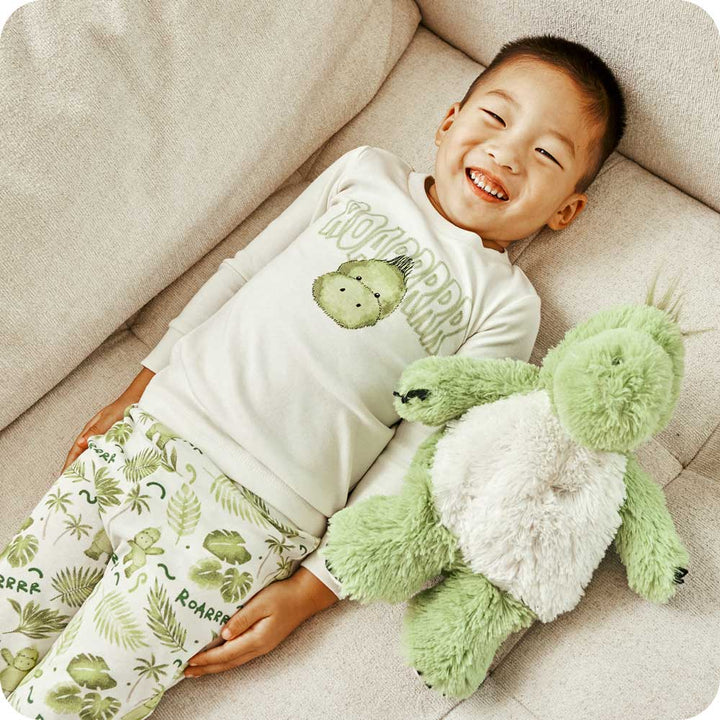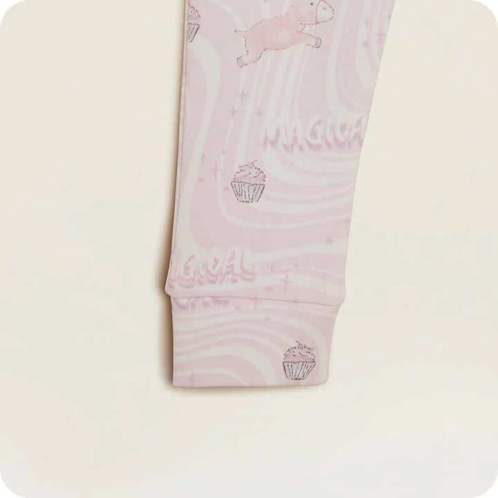 Warmies pajamas are made for stylish, soothing comfort at bedtime, designed with calming hues in a 100% cotton fabric that gets softer with every wash. The ribbed pajama set features a stretch elastic waistband, ensuring they remain securely in place, and the Warmies label is printed directly on the fabric to avoid the irritation of traditional scratchy tags.