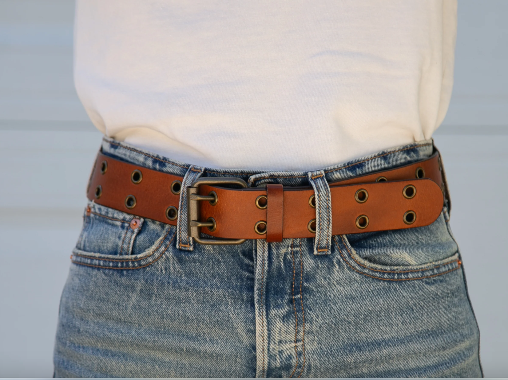 Add a touch of rugged charm with the West Leather Belt, featuring a genuine leather strap adorned with a smart grommet hole pattern. This playful design not only adds flair but also ensures easy adjustment for the perfect fit every time. Durable and stylish, it’s the go-to belt for those who like a little edge in their everyday look.