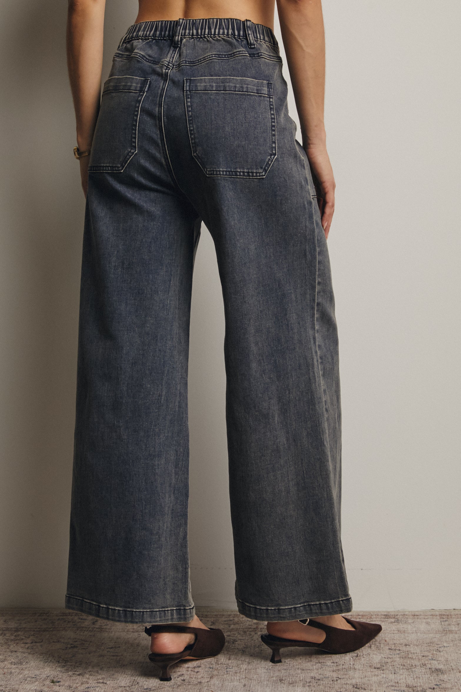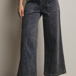 Meet your new denim obsession—wide-leg stretch jeans that deliver comfort without compromising style. Crafted from soft, breathable cotton-spandex blend, these pants feature a flattering high-rise fit and dramatic straight-cut legs that elongate your silhouette. Oversized patch pockets add utilitarian flair, while the clean raw-edge hem keeps things modern and refined. Whether you're pairing them with an oversized sweater or a tucked-in blouse, these versatile jeans strike the perfect balance between structured and relaxed. Pure denim magic.