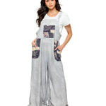Effortless style meets comfort in this everyday wear jumpsuit. Featuring a striking floral mandala print patchwork with color contrast design, it's crafted from stretchy fabric for a relaxed fit that moves with you. The straight neckline and adjustable buttoned straps provide a customizable silhouette, while functional front chest and side pockets keep essentials within reach. Elastic paneling on the back enhances the fit, and the wide-leg cut flows beautifully from hip to hem. An adjustable drawstring hem lets you tailor the length to your preference. Perfect for casual outings, weekend adventures, or laid-back days at home.